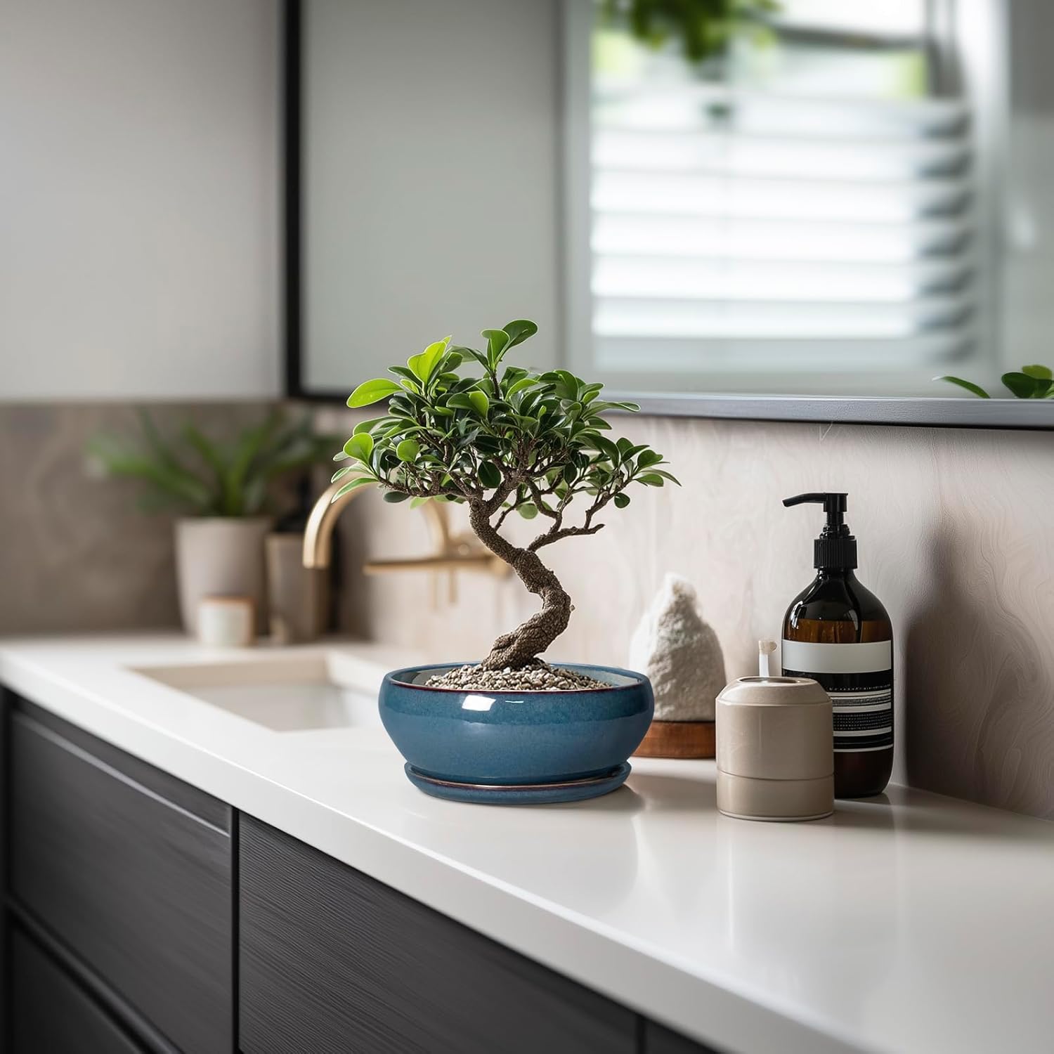 - Plant Pots with Drainage Hole and Ceramic Saucer: The bottom of the bonsai pots has drainage hole and a matching ceramic plant saucer to collect excess drainage and soil overflow, keeping plant root cared and your indoor tidy