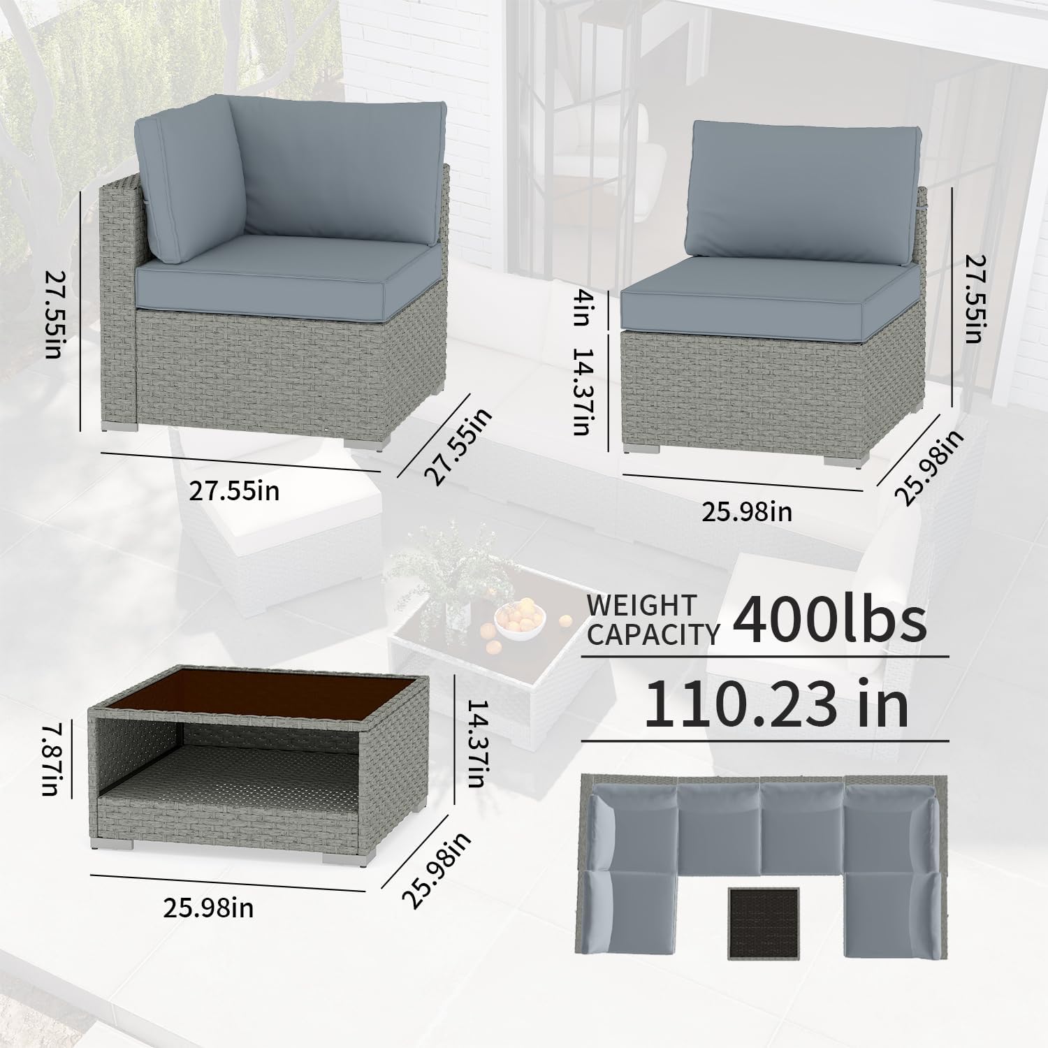 - All-Weather Design: Our outdoor couch sectional sofa and chairs are designed to withstand the elements, so you can enjoy your furniture year-round.