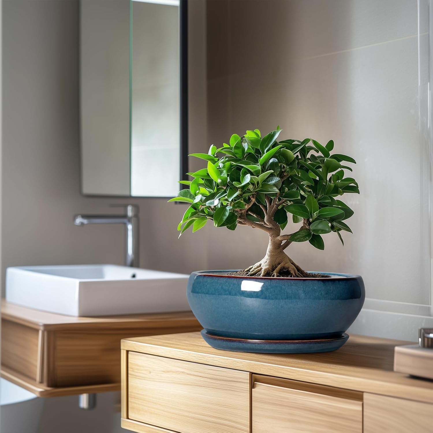 - Plant Pots with Drainage Hole and Ceramic Saucer: The bottom of the bonsai planter has drainage hole and a matching ceramic plant saucer to collect excess drainage and soil overflow, keeping plant root cared and your indoor tidy