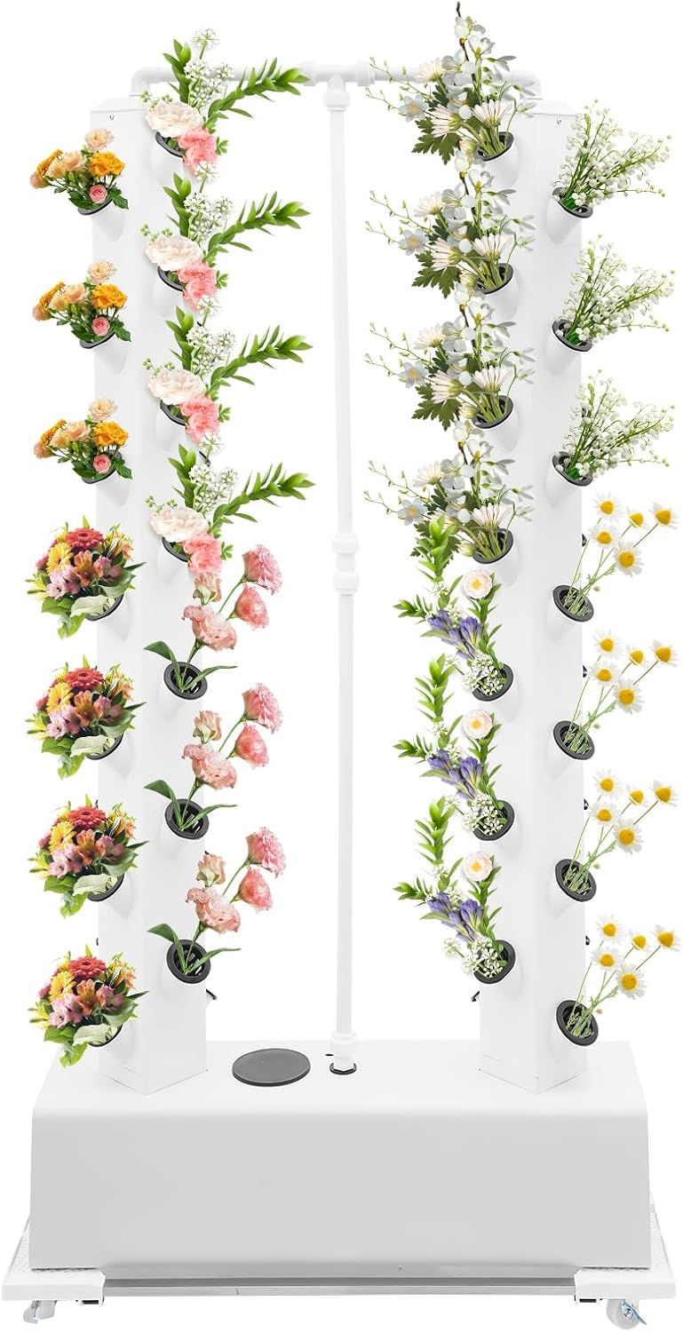 - π± Grow 56 Plants in Minimal Space β This vertical hydroponic system (65" tall) fits balconies, patios, or kitchens, yielding 4X more than soil gardening. Perfect for herbs (basil, mint), leafy greens (lettuce, kale), strawberries, and peppersβno soil needed!
