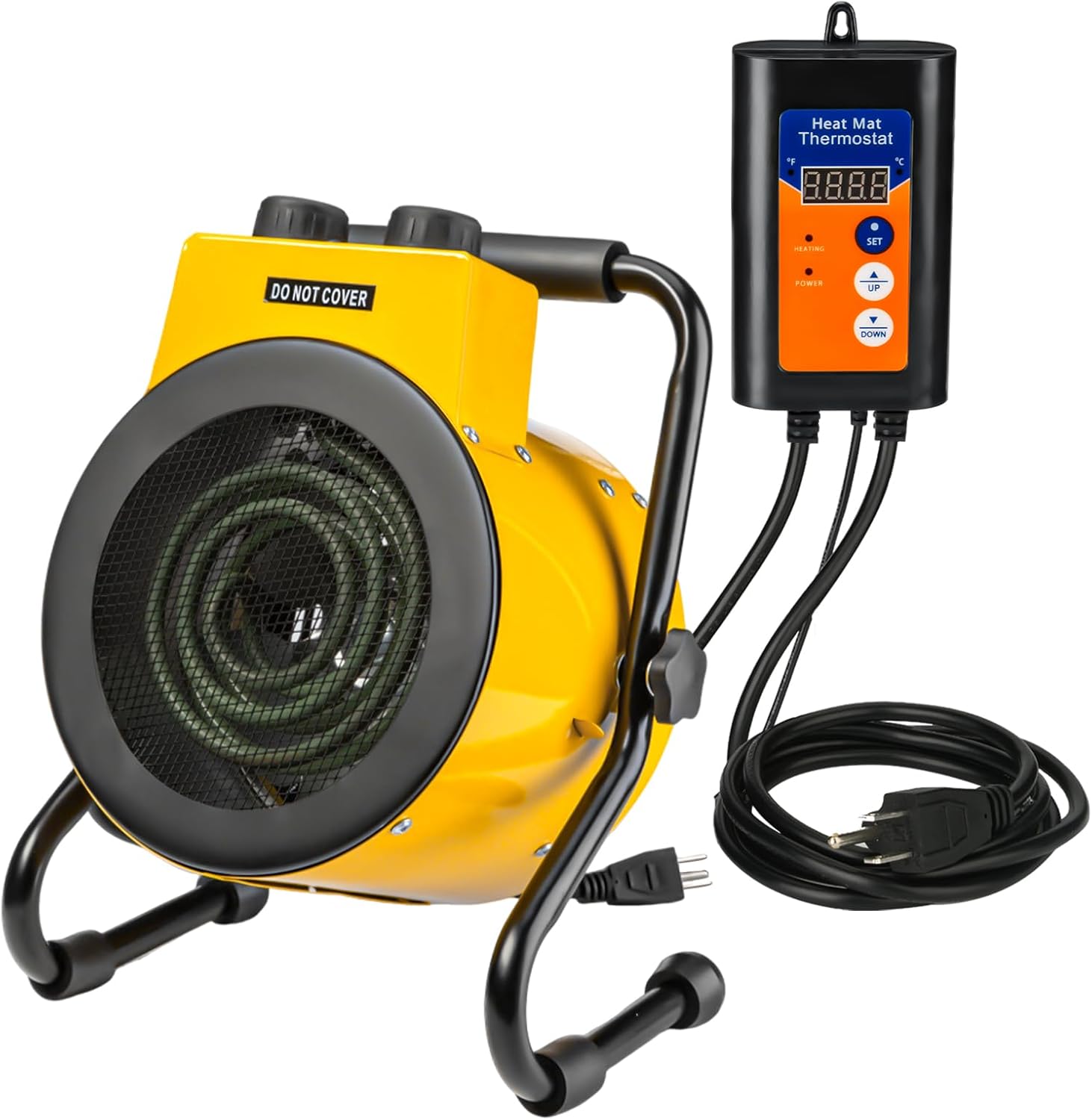 - DIGITAL THERMOSTAT: The electric greenhouse heater features a digital thermostat for precise, energy-efficient temperature control, fostering optimal plant growth. With an adjustable range of 40β-108β (5β-42β), it automatically shuts off if the temperature exceeds the set point by 1Β°C.