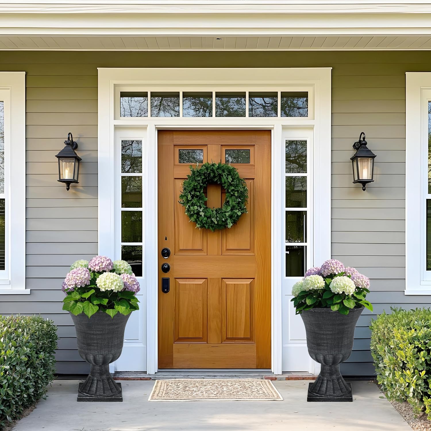 - Classic Urn Planter with 3D Textured Design: These spacious large urn planters, crafted from durable plastic, showcase timeless elegance with stunning 3D textures and a hand-painted antique finish. More than just planters, they’re sculptural accents for your front porch, patio, or living room. Ideal for those who love the charm of traditional aesthetics in their large plastic flower pots.