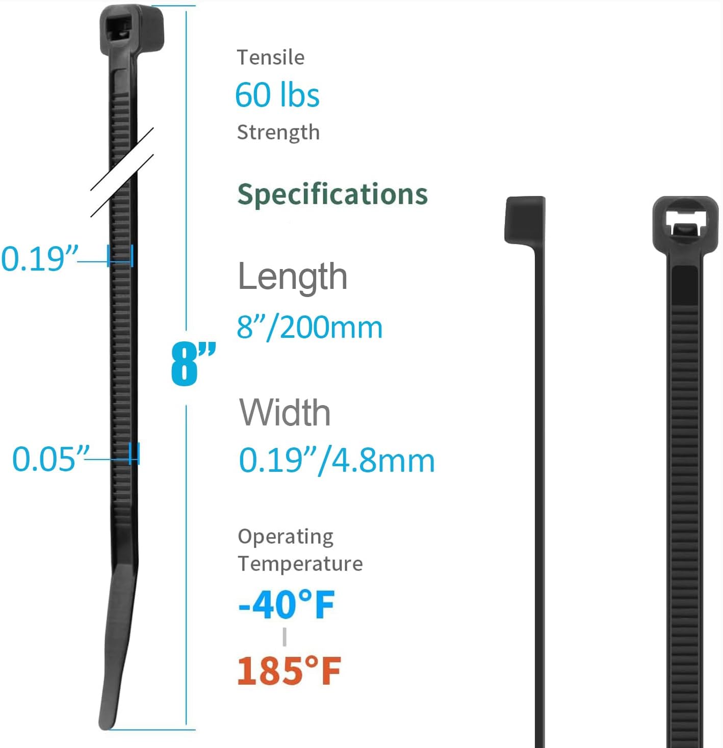 - ★【Great Design】Self-locking fastener design, sturdy and durable, easy to operate. The width of our cable tie is 0.18inch/4.8mm, which makes the cable tie stronger than the same size cable tie on the market and tensile strength could handles most purpose of binding in life.