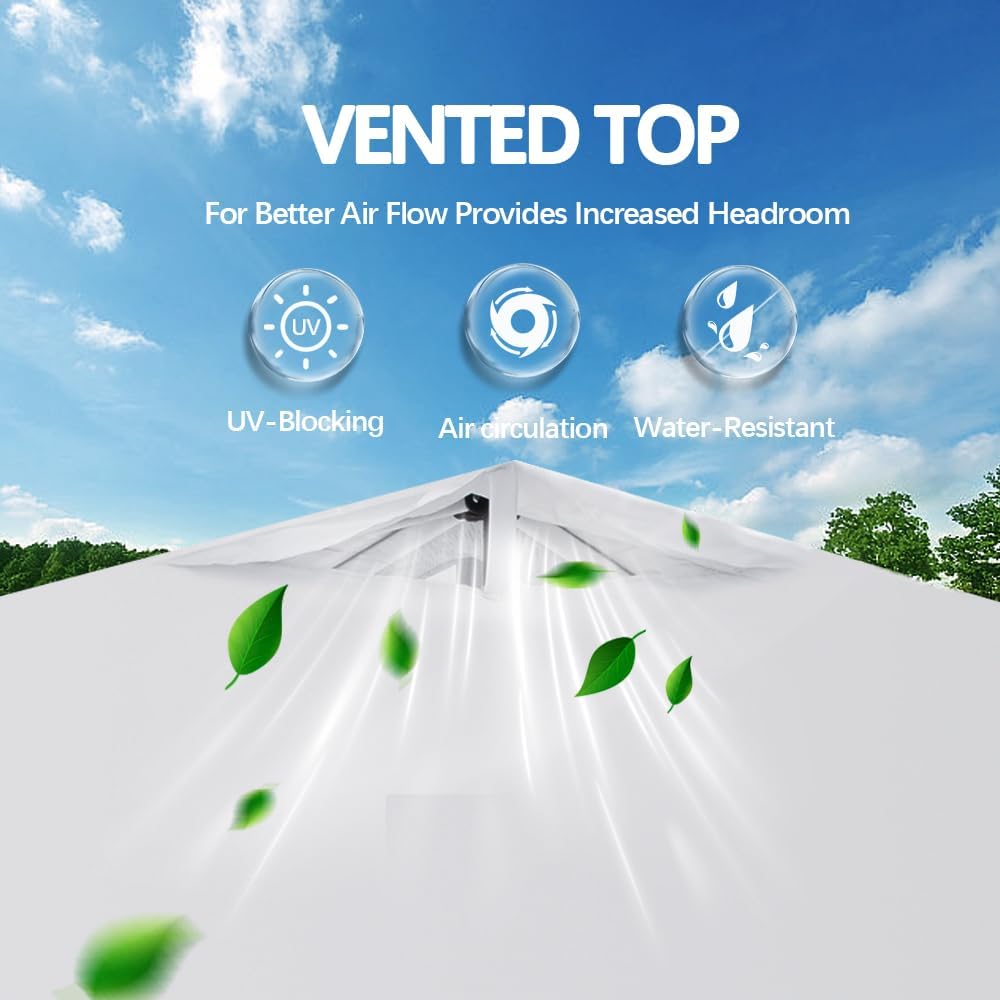 - 【Effortless One-Person Setup】 Set up your 10x10 pop up canopy in seconds with our patented central lock system. Just push once to expand and lock all four legs—no tools required. With 3 adjustable height levels and pinch-free buttons, it’s safe and smooth. Packing up is equally easy: simply pull down the central hub and fold. Ideal for outdoor events, beach, tailgating, or backyard gatherings.