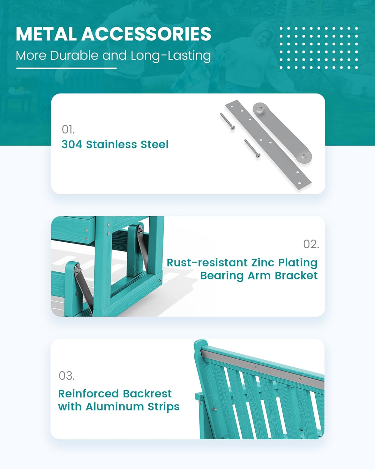 SERWALL 2 Person Patio Glider Bench, HDPE Material Weather-Resistant Swinging Bench for Outdoor Porch Garden, Aruba