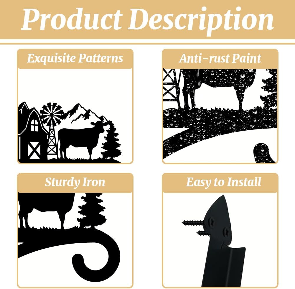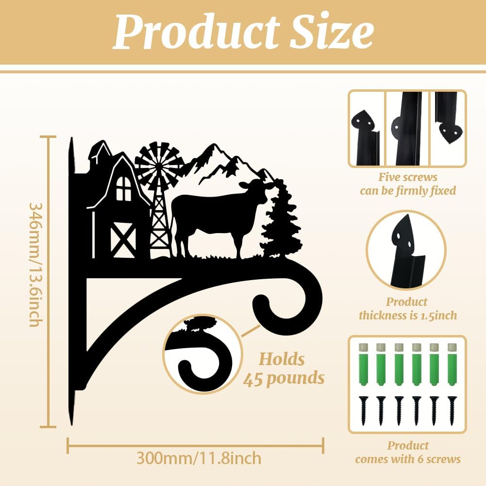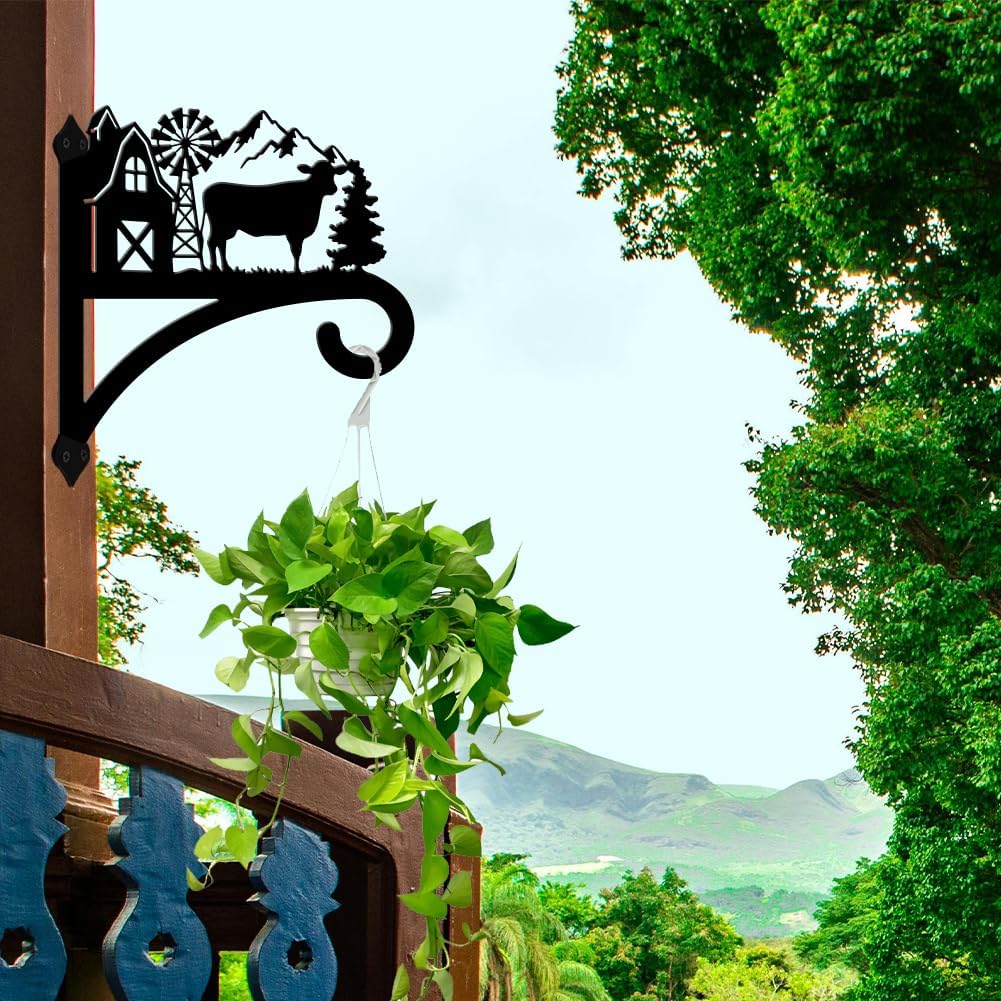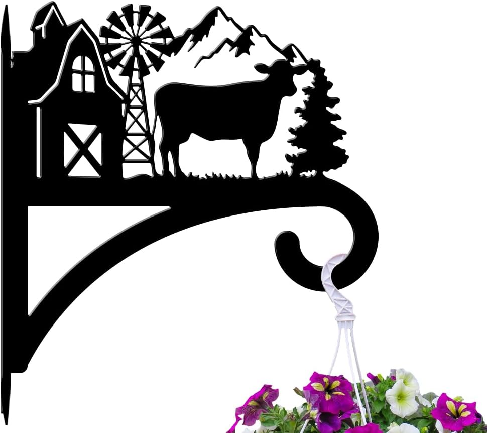 peacoblue Iron Plant Hangers Hooks for Outdoor Indoor Hanging Plants Flower Fern Pots Lantern Bird Feeder,11.8"x13.6" Weather Resistant Metal Wall Holder for Porch Garden Farmhouse(Farm Cow)