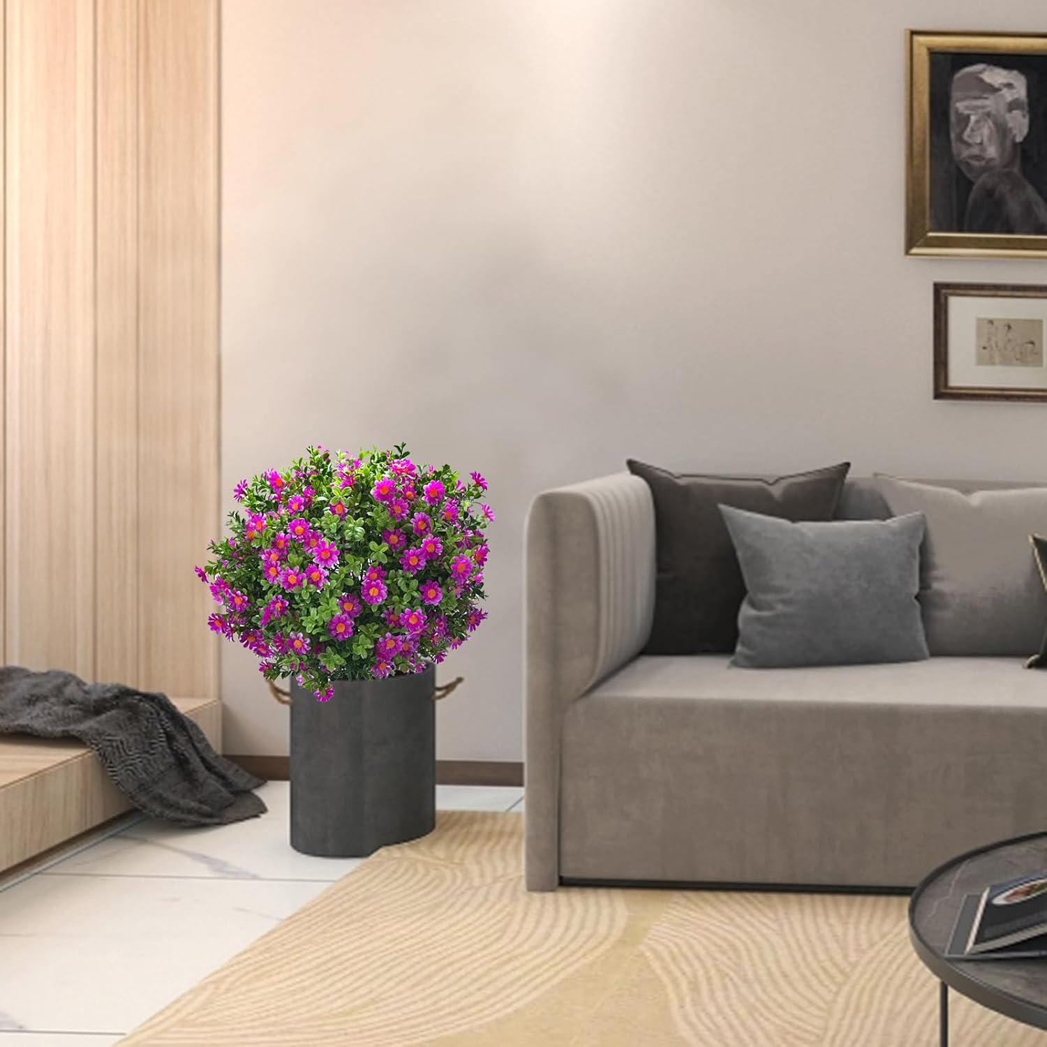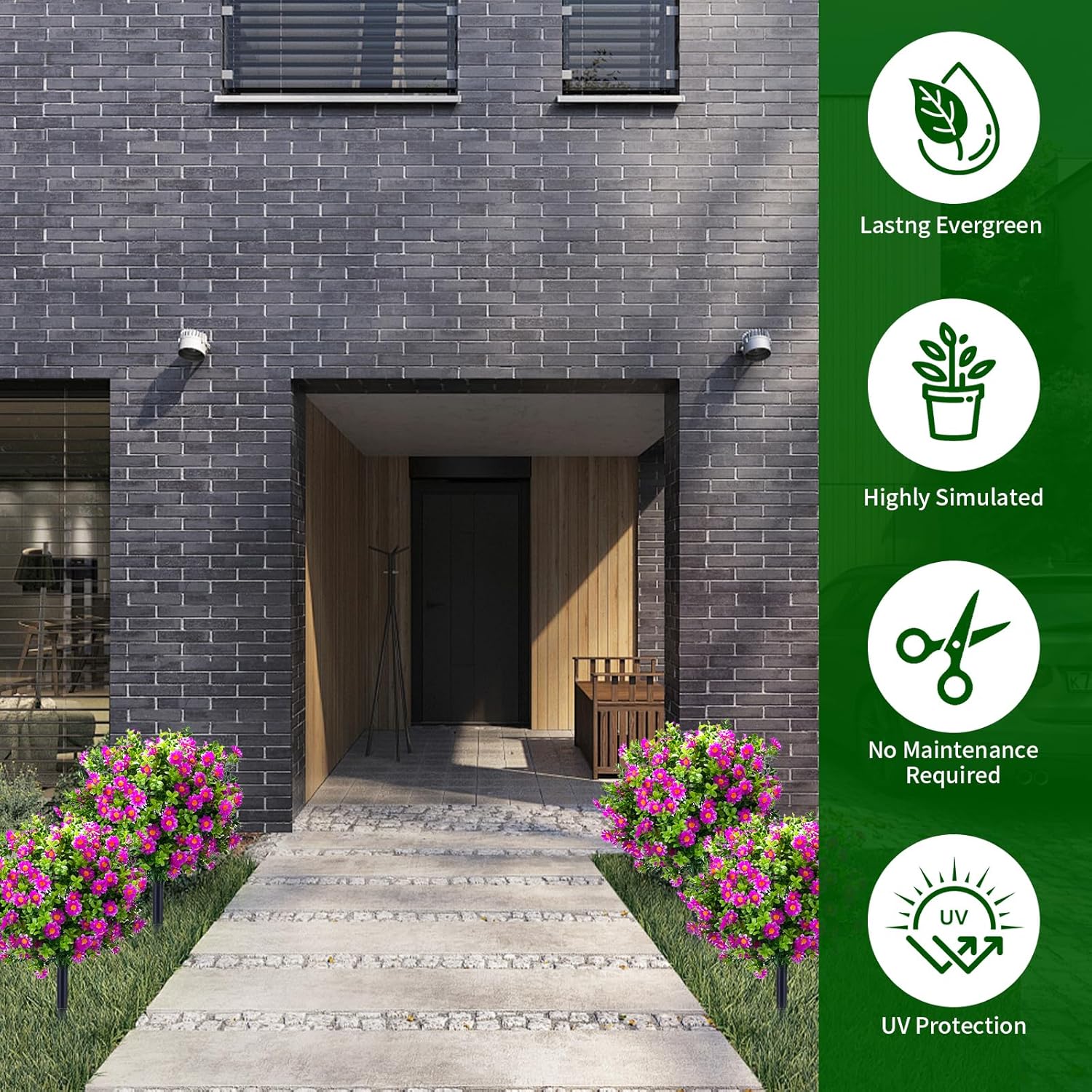 - Durable & UV Resistant β Crafted from premium silk and plastic, these faux plants are weatherproof and UV-protected, keeping their vivid colors and shape season after season, even under sun and rain.