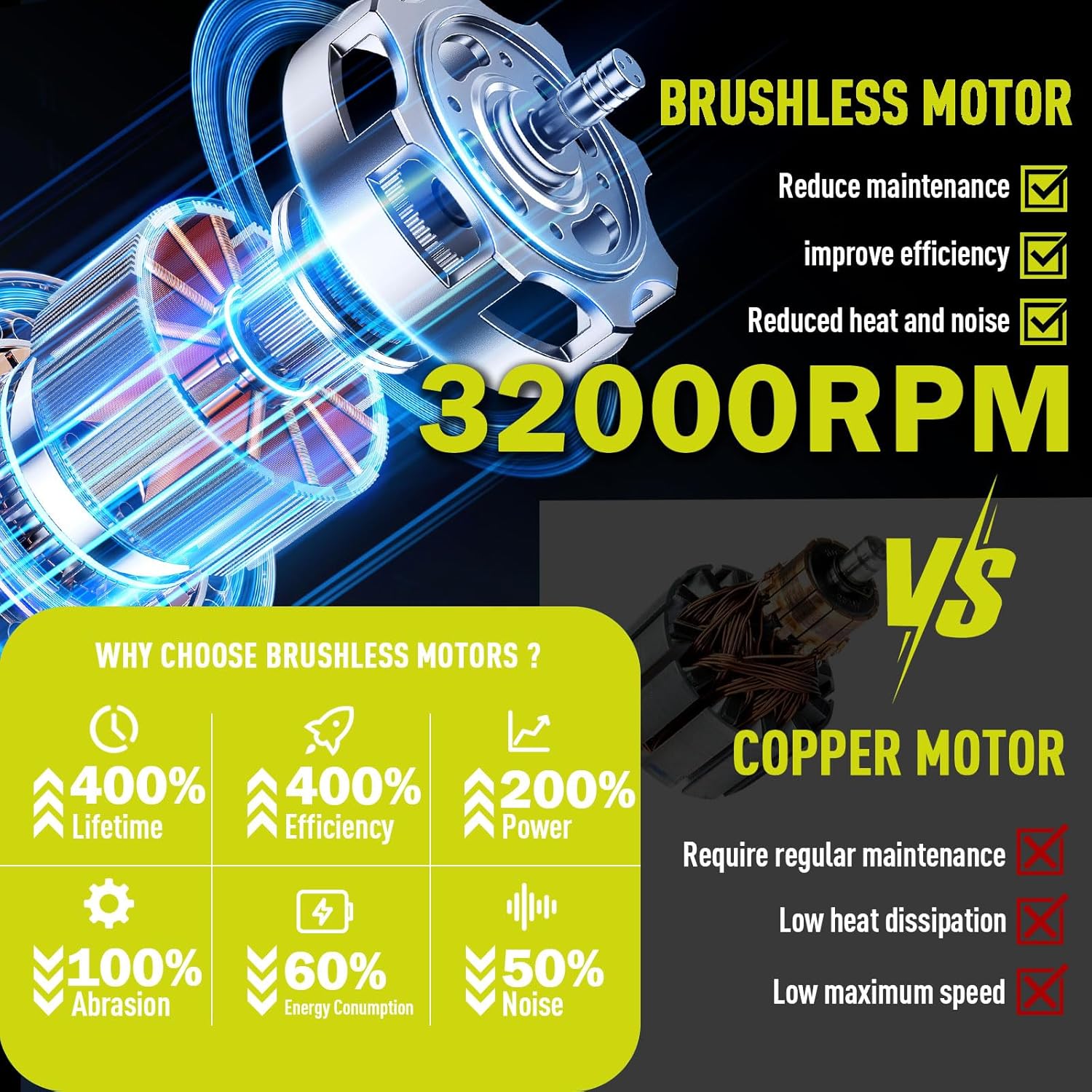 - ăAdvanced Axial Fan Technology and High Performance Brushless Motorsă: The Sihuird Leaf Blower uses a High Efficiency Brushless Motor, Maximum setting 32000 rpm, Adopting advanced axial fan technology, it provides greater air volume and more heat dissipation than traditional centrifugal fans. And equipped with 12 turbine blades and turbocharging function, providing higher airflow. Air volume and wind speed up to 680CFM and 190MPH.