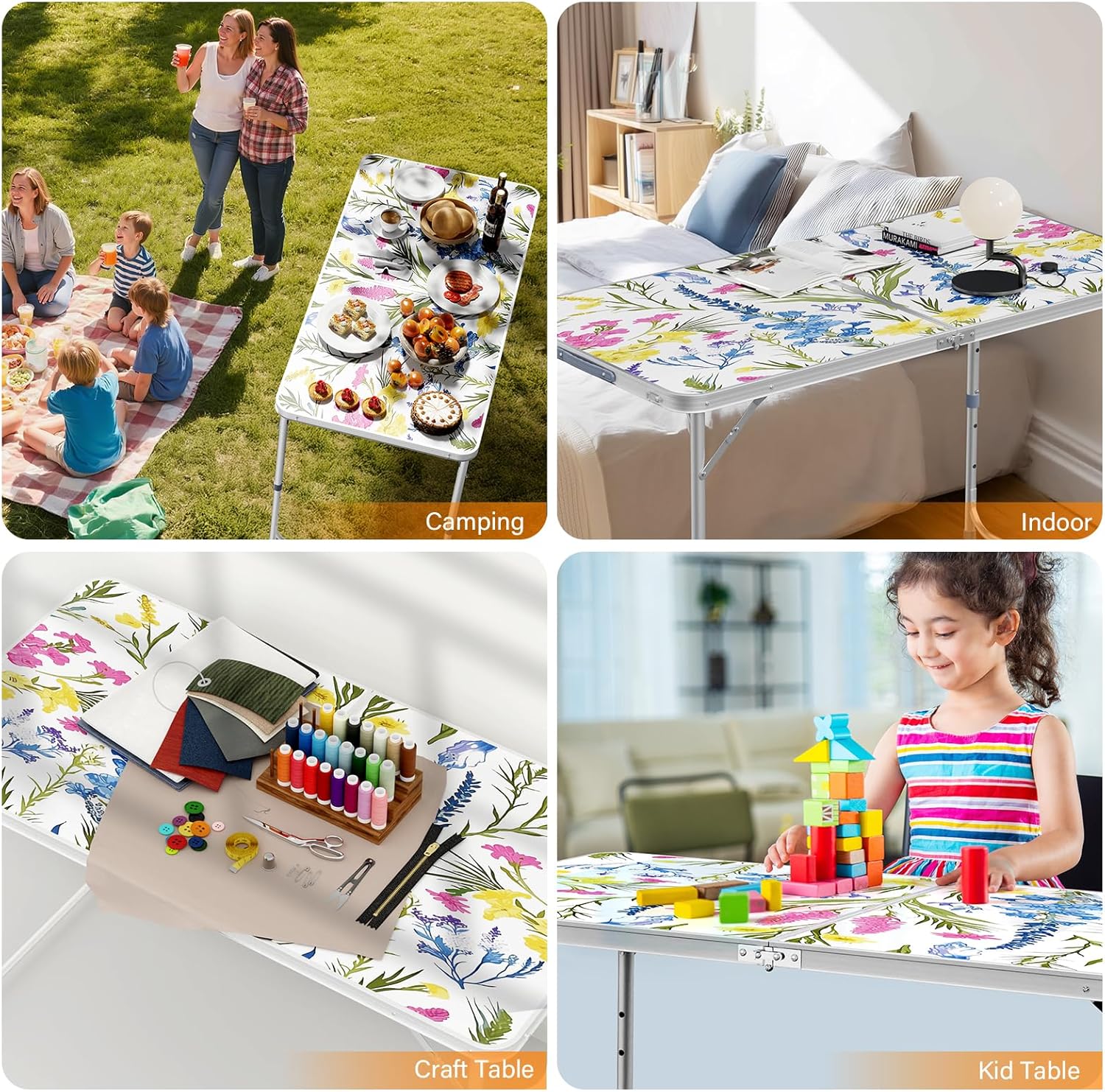 - MULTIPURPOSE TABLE: The foldable table is universal . Perfect for outdoor and indoor activities, camping, picnic, hiking, fishing, Dining, BBQ, party, travel, gathering, concert, sports, event.