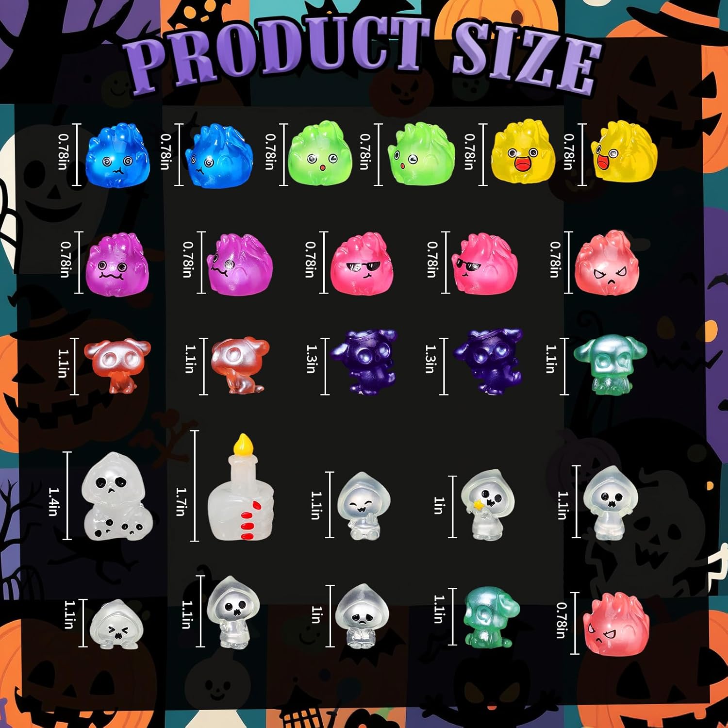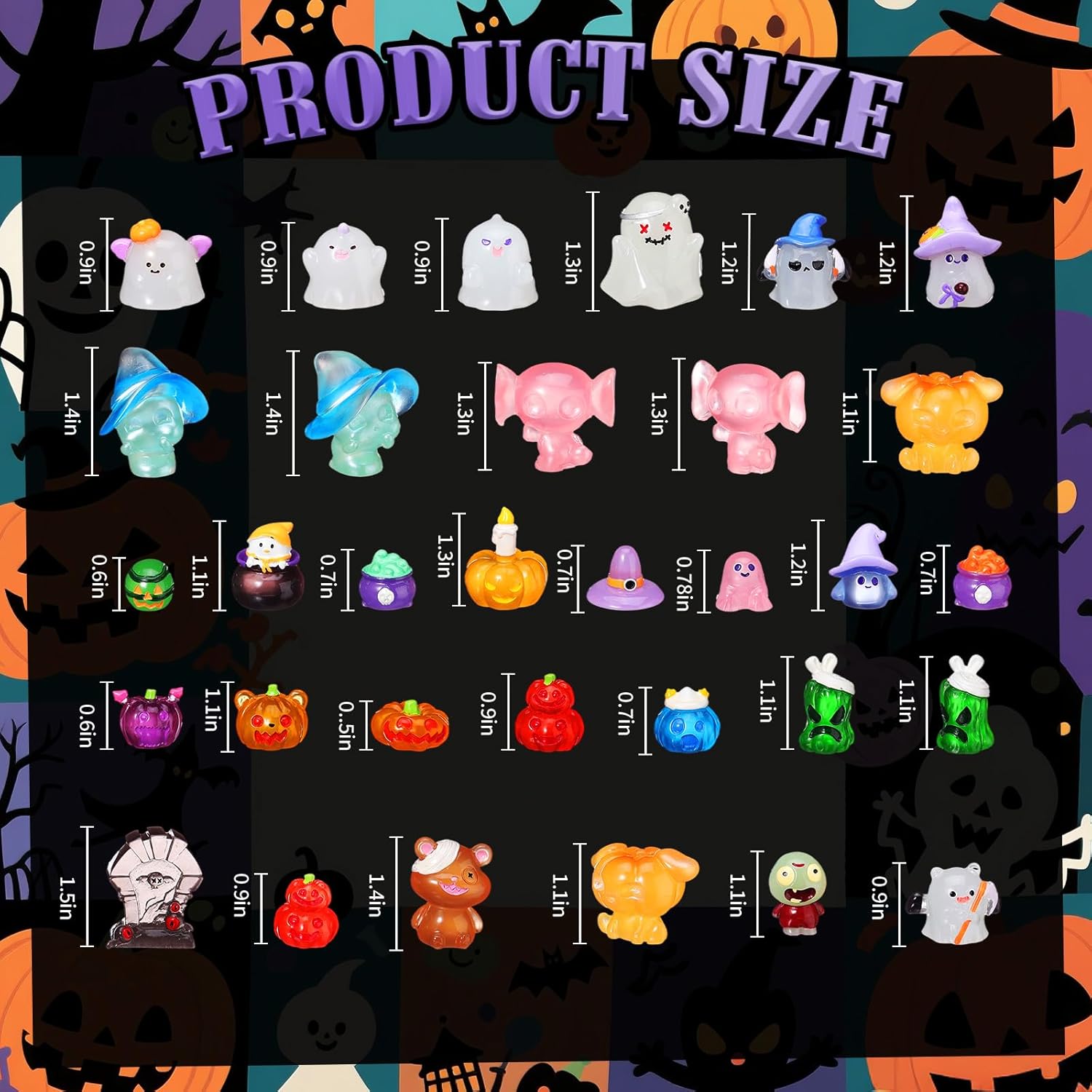 - Halloween Glow in Dark Figures Set: transform your space with 58 diverse glow in dark Halloween figures, Halloween miniatures illuminate in the dark; Craft a full-fledged Halloween ambiance effortlessly