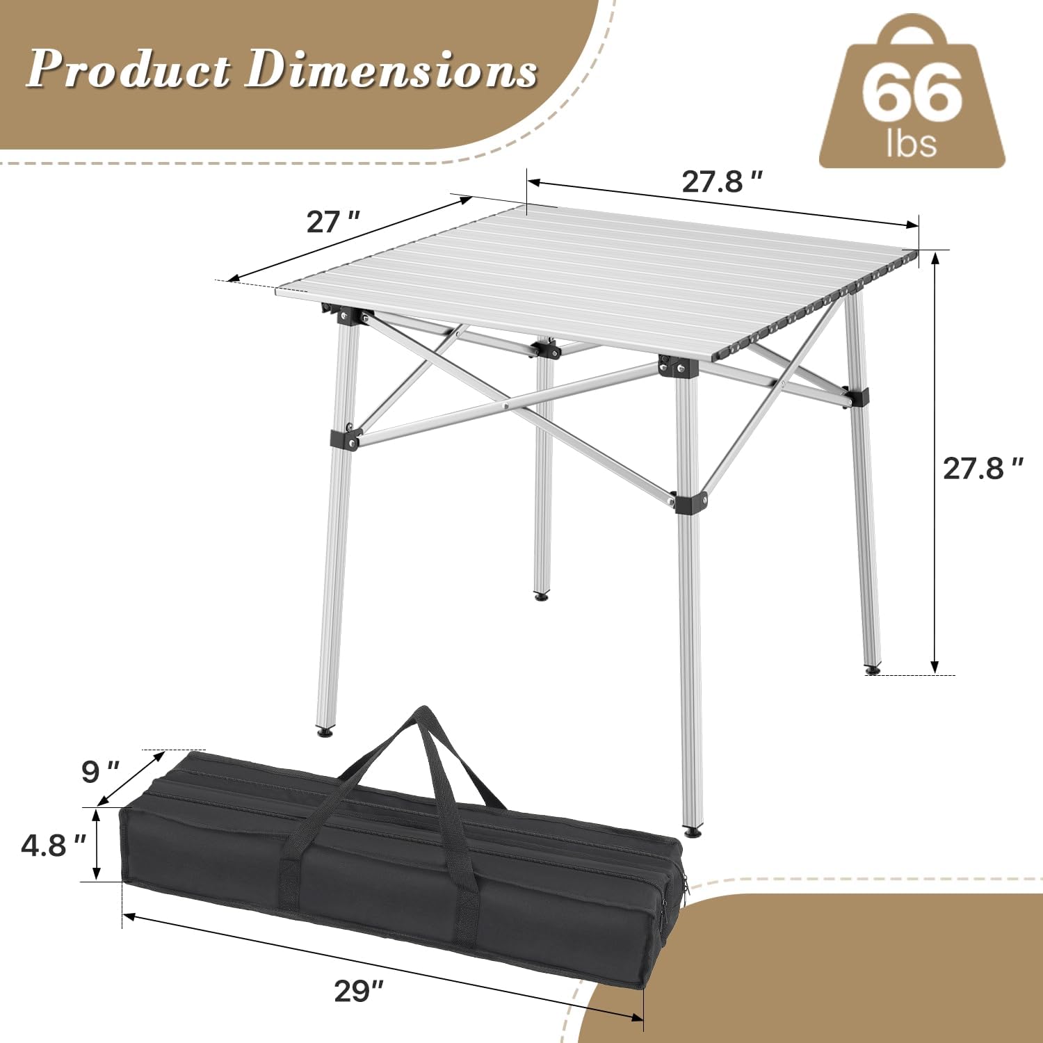 - Versatile Use: Perfect for camping, picnic, grilling, road trips, beach outings, and even indoor events. Made from lightweight aluminum alloy, this ultra-portable table comes with a handy carrying bag, making it easy to take along without taking up much trunk space.