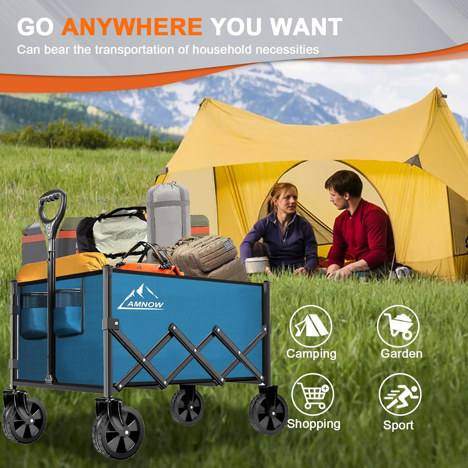 - WAGON EASY TO CARRY AND STORE: Our unique and innovative folding design makes this grocery wagon easy to fold or unfold in one step with no tools required. Weighing in at only 13 pounds and folding up like a mini-bag that can be lifted easily with just one finger, the AMNOW Portable Shopping wagon is easy to carry or store in the trunk of your car, a closet, garage, or pantry.