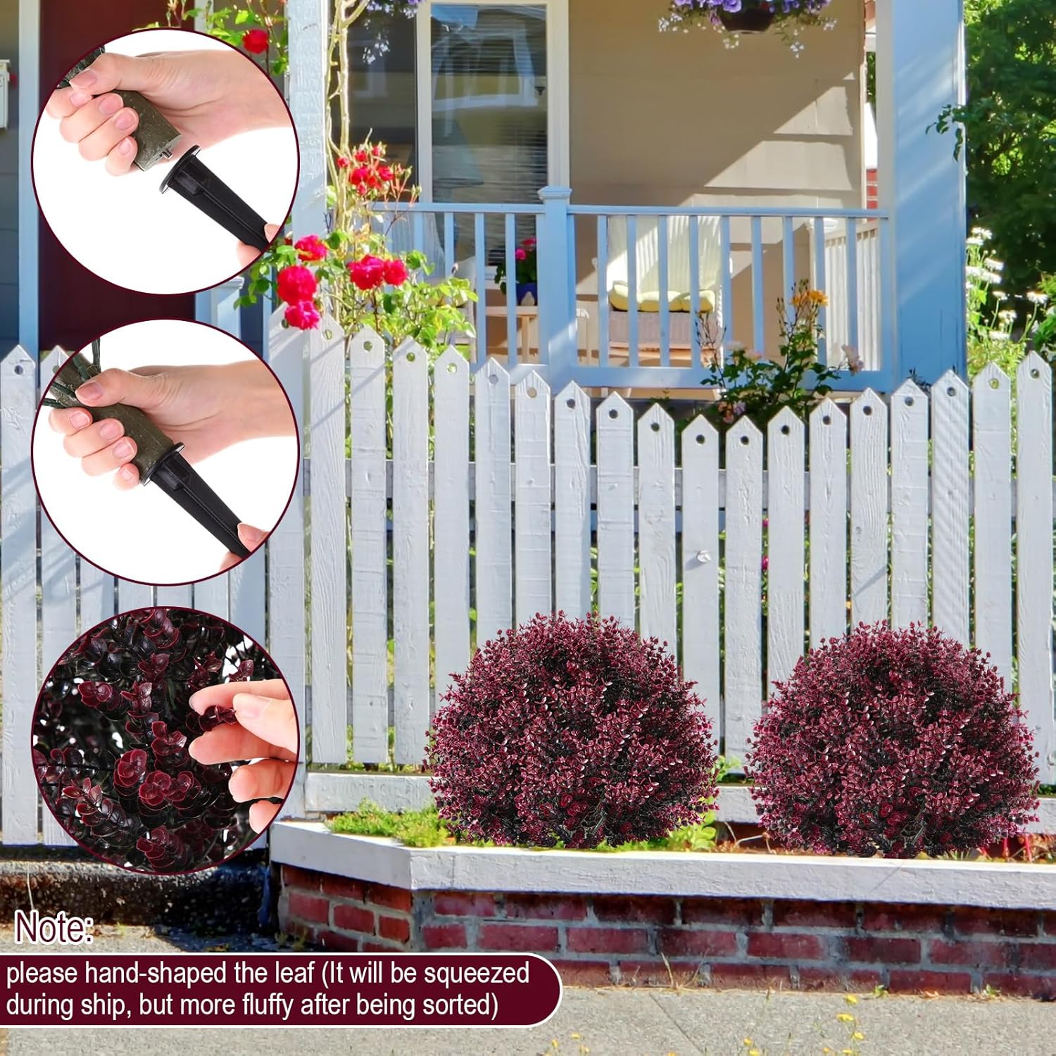 - Wide Use: the artificial boxwood plants outdoor pushed in the ground are ideal for enhancing a variety of settings; Whether the front porch, balcony, backyard, pergola, garden, patio or hedge, faux boxwood balls with realistic leaves would bring you a feeling of relaxation; It's ideal for indoor and outdoor garden decorations, also ideal for friends and relatives as housewarming gifts
