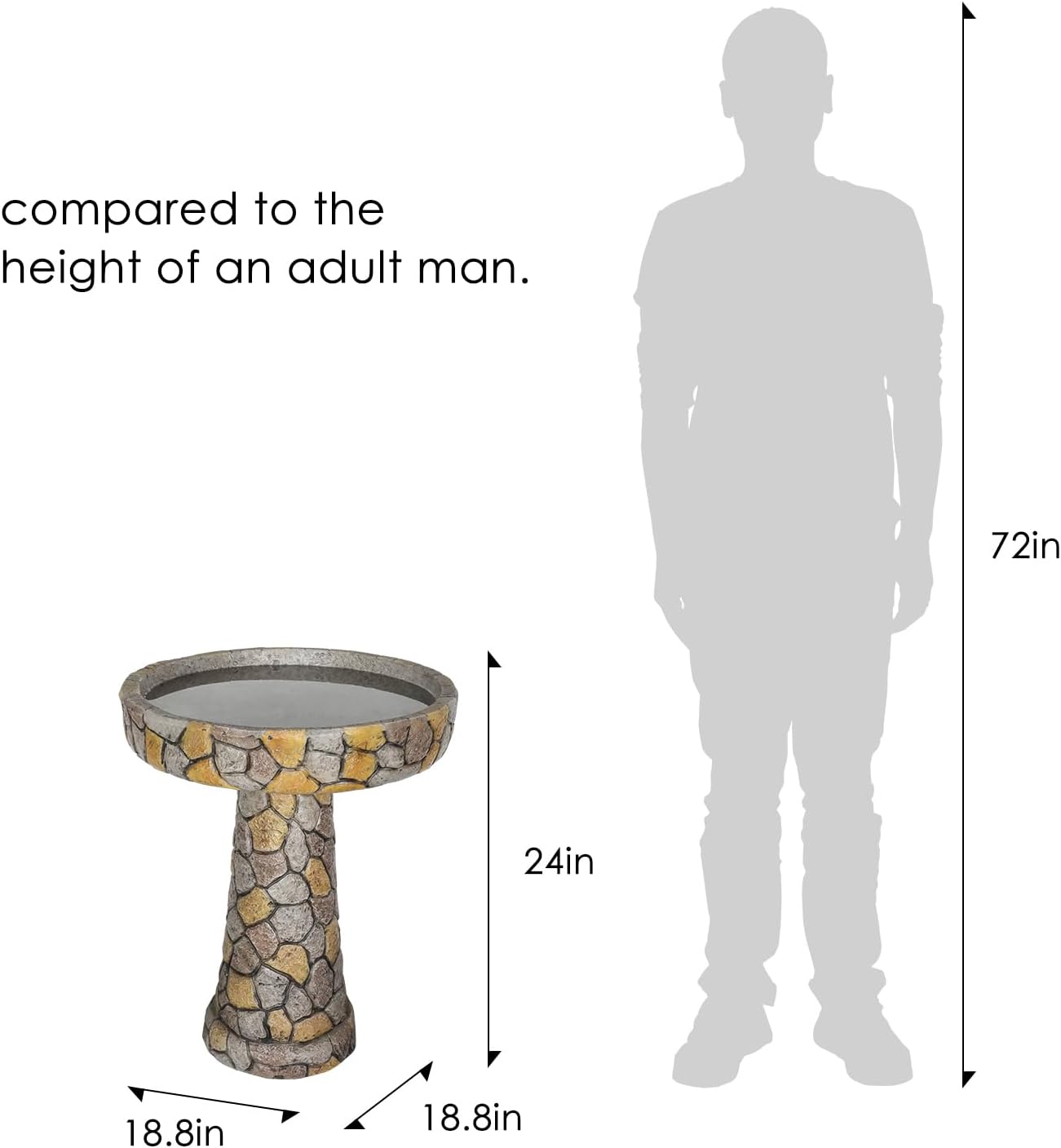 - Promotes Bird Health and Hygiene: Size in 24"H * 18.8"Φ of bird baths for outdoors helps to keep the water cleaner for longer periods by reducing the risk of contamination from ground debris. Creates a safer and more hygienic environment for birds to bathe and drink, promoting their health and well-being.