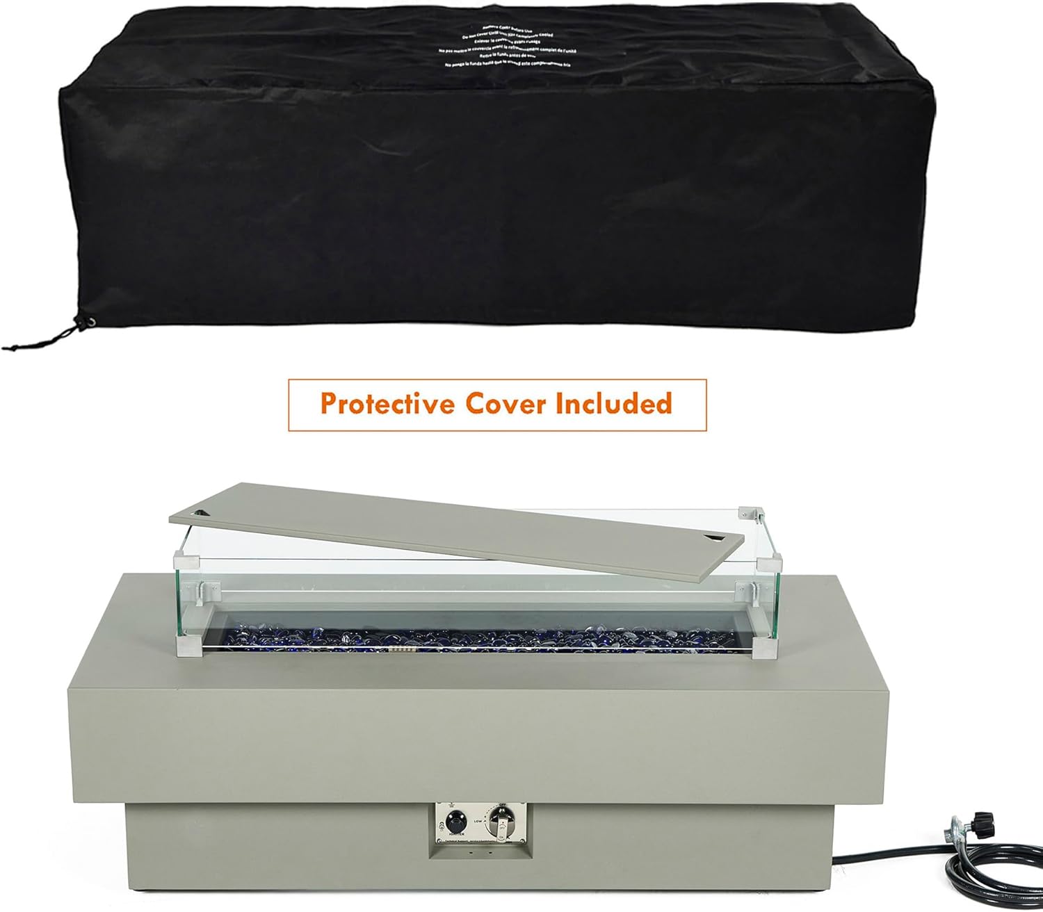 - Wind Glass Shield Included - The round gas fire pit includes a wind glass shield to protect the flame, keeping it steady on windy days.