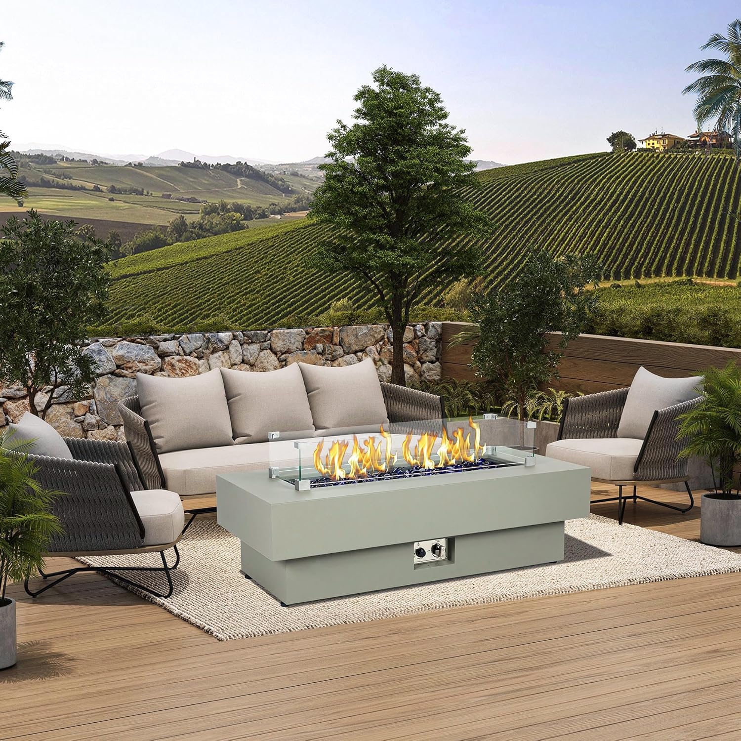 - Modern Style, Durable Construction - The propane fire pit table features a durable powder-coated steel frame and a modern design that will elevate your patio. It comes in a Flint Gray textured finish for added style and durability.