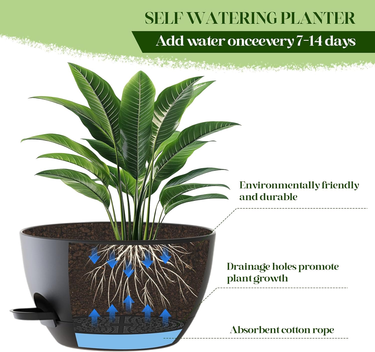 - π§ EASY WATER MANAGEMENT: Patented self-watering system delivers water to the roots for up to 2 weeks! Includes water dispenser for easy filling and removable reservoir for easy cleaning.
