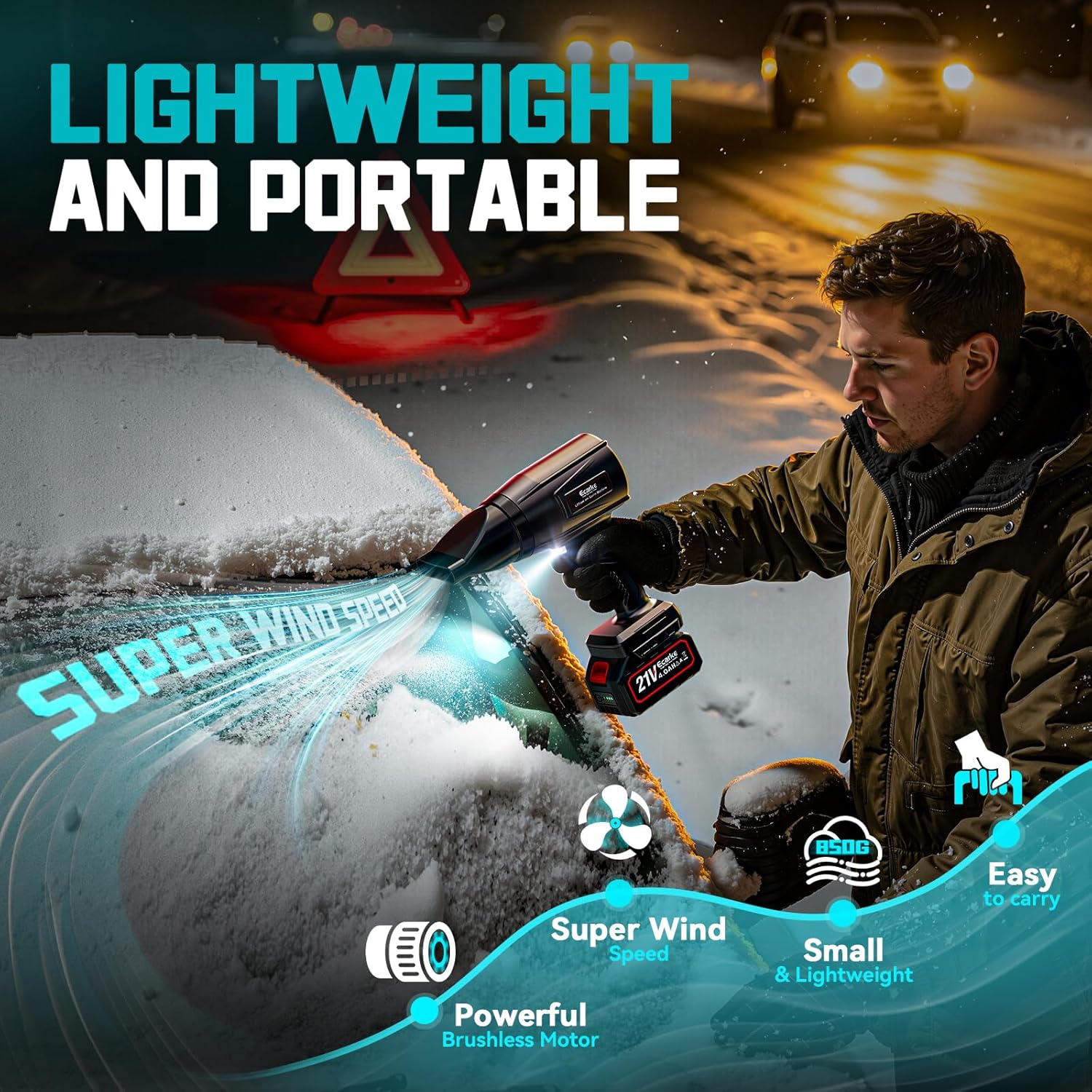 - Effortless One-Handed Power: Wave goodbye to heavy blowers! At just 1.5 lbs (lighter than most laptops), Ecarke blowers delivers perfect balance for total one-hand control. The compact size lets you easily store it in tight spaces like garage shelves or car trunks when not in use.