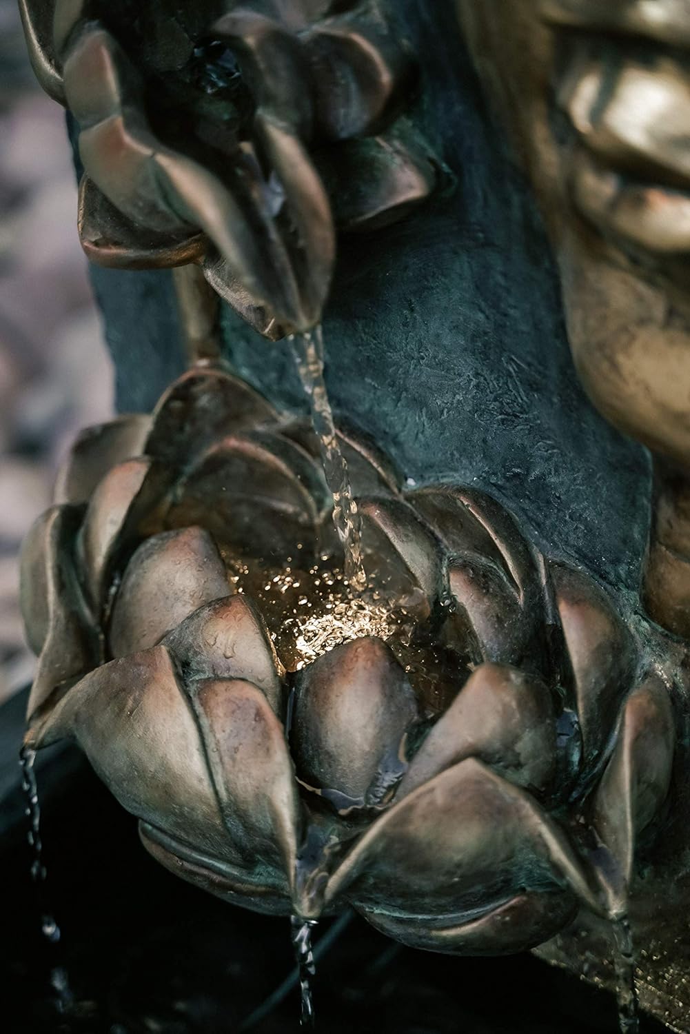 - SMOOTH CASCADING WATERFALL: Relax after a long day with this peaceful Zen water feature; water gently flows from the top lotus flower to the bottom bowl, providing calming sights and sounds