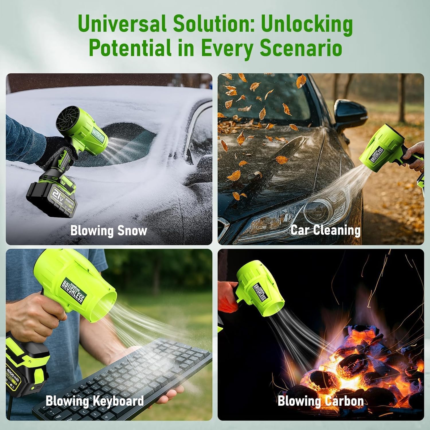 - 【Unmatched Power for Effortless Cleaning】Get serious cleaning power with a 580,000 RPM motor and 1200G force. Quickly clear leaves, dust, and debris from your patio, deck, or yard—without back-breaking raking. This hand held blower points to the target and starts working immediately.