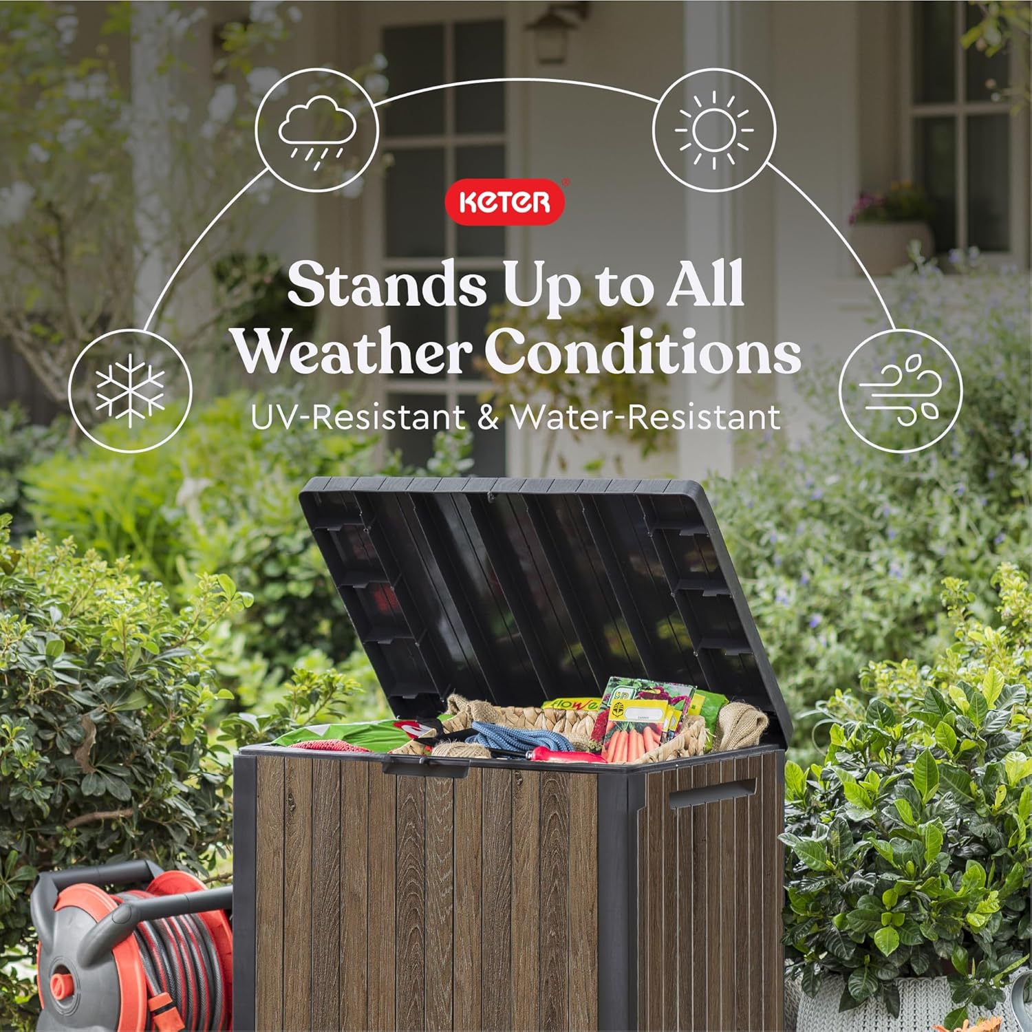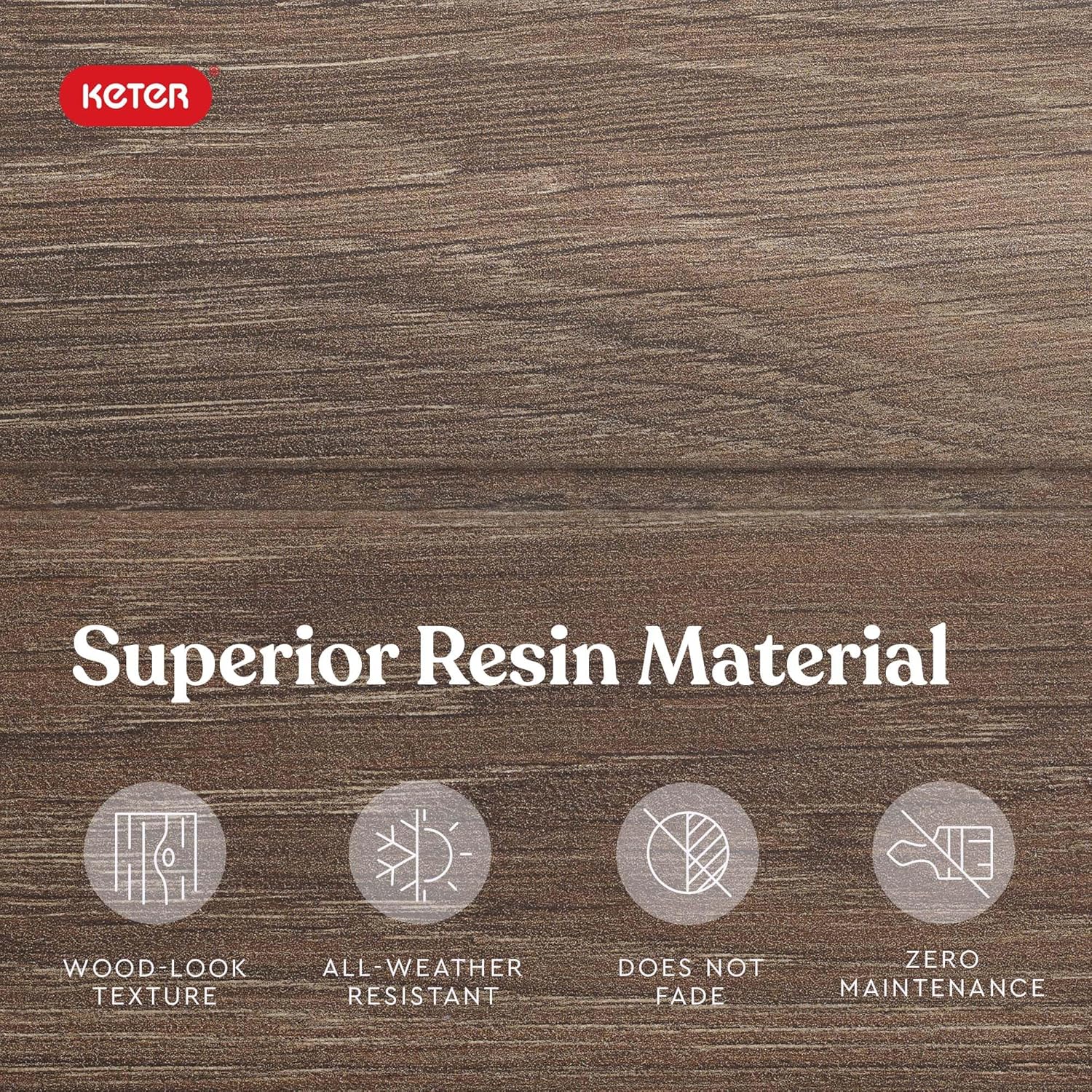 - RESIN CONSTRUCTION: It's made out of all weather-resistant resin with an appealing wood-look texture