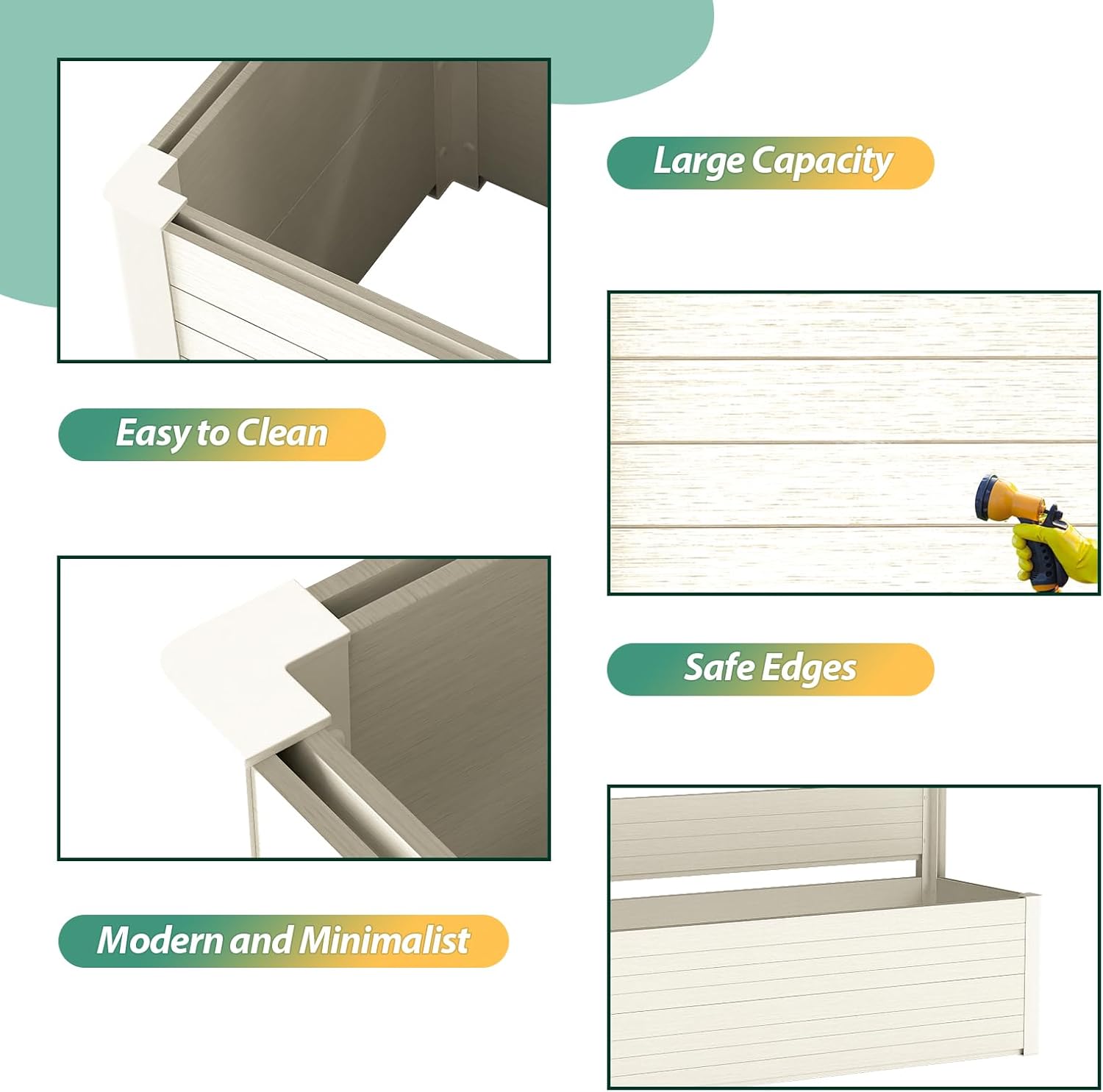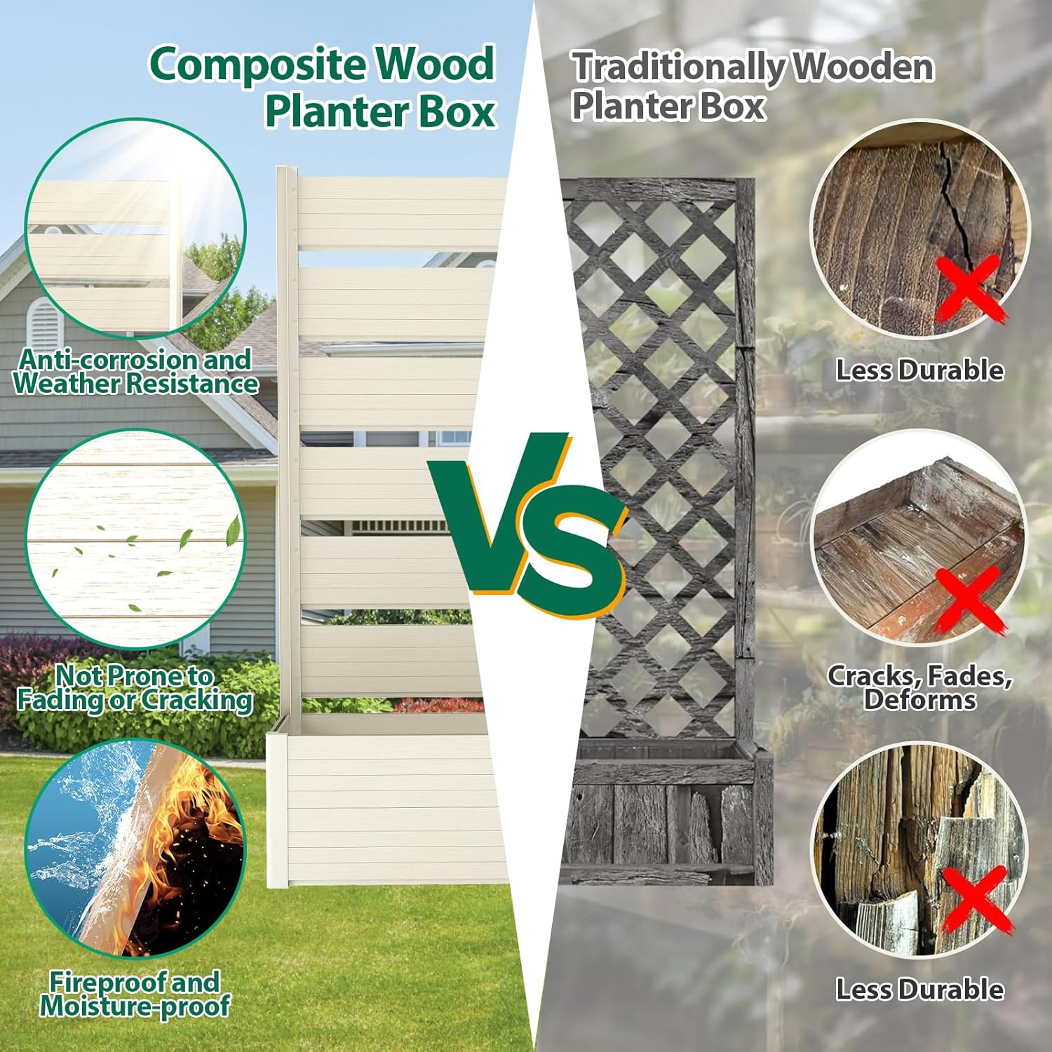 - Durable & Weather-Resistant: Built with weather-resistant composite wood and high-quality aluminum, this planter bed is designed to withstand hot summers, cold winters, and everything in between, ensuring long-lasting beauty and functionality.