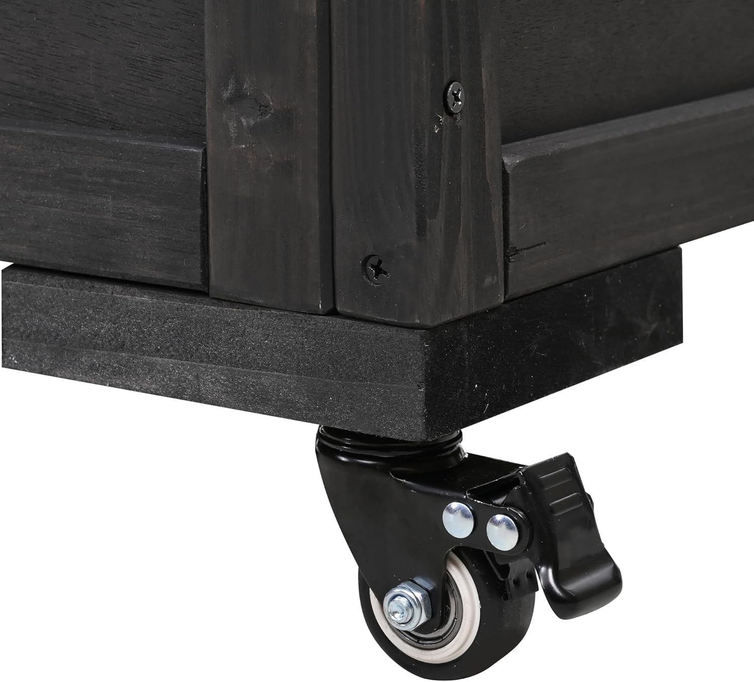 Portable Wooden Cold Frame Greenhouse with Wheels - 47" Mini Greenhouse with Adjustable Roof, Storage Box & Polycarbonate Panels - Plant Protector for Seedlings, Herbs & Winter Gardening (Black)