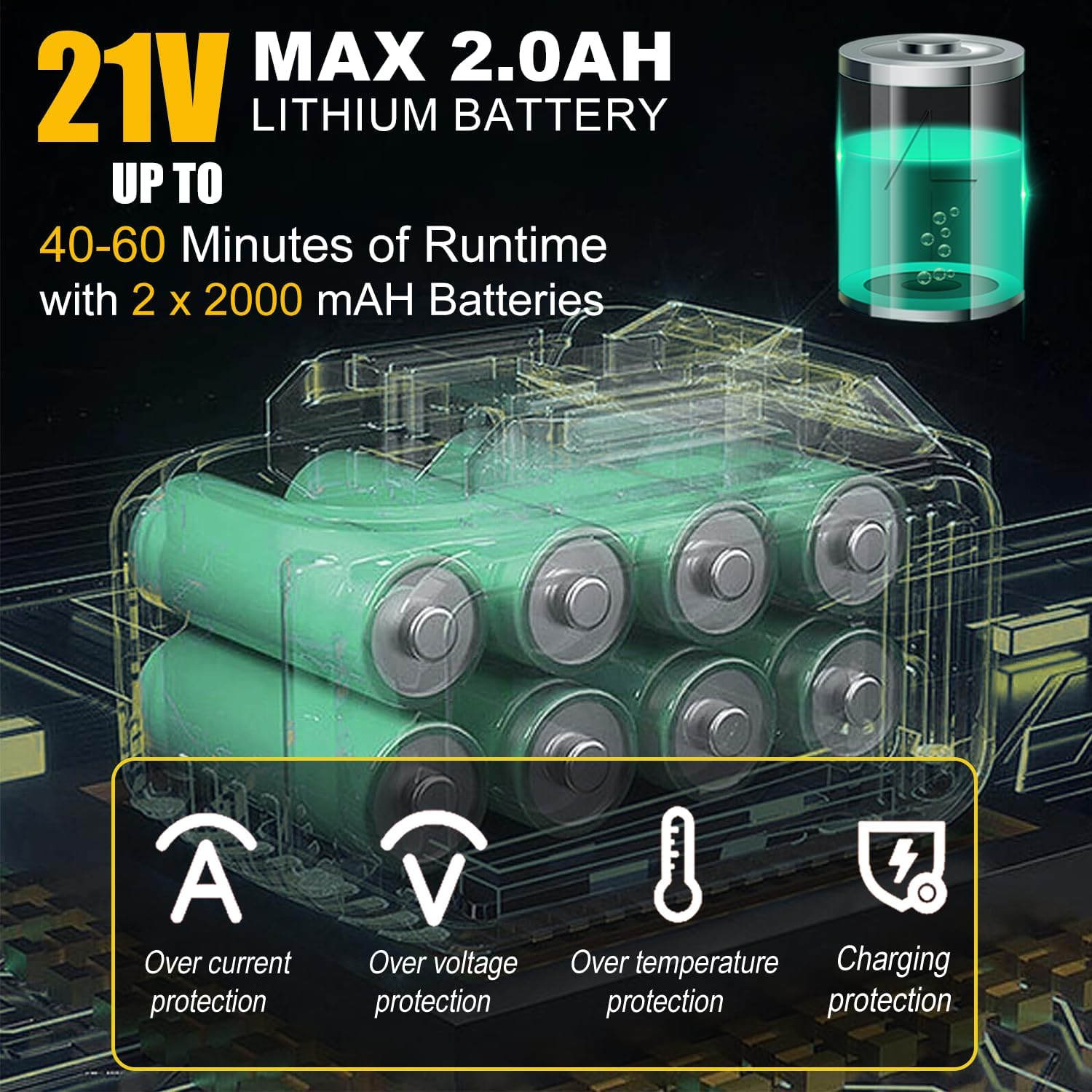 - DUAL HIGH-CAPACITY BATTERIES: Say goodbye to battery worries! cordless weed trimmer provide 2 powerful 21V 2000mAh batteries. This ensures hours of uninterrupted cutting, easily completing lawn trimming work. Experience endless power and seamless operation with our weed whacker battery powered