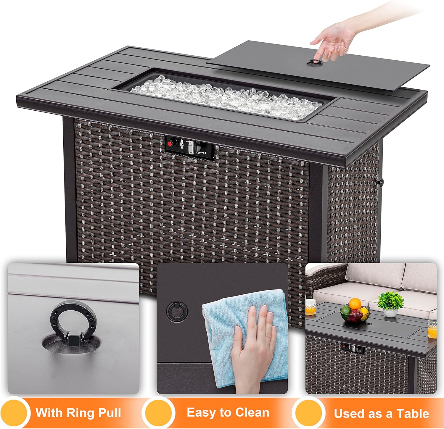 Nuu Garden 43 Inch Propane Fire Pit Table, CSA Certified 50,000 BTU Outdoor Patio Propane Fire Pit Table with 7 lbs Glass Stone and Removable Lid, Aluminum Tabletop, Water-Proof Oxford Cover, Brown