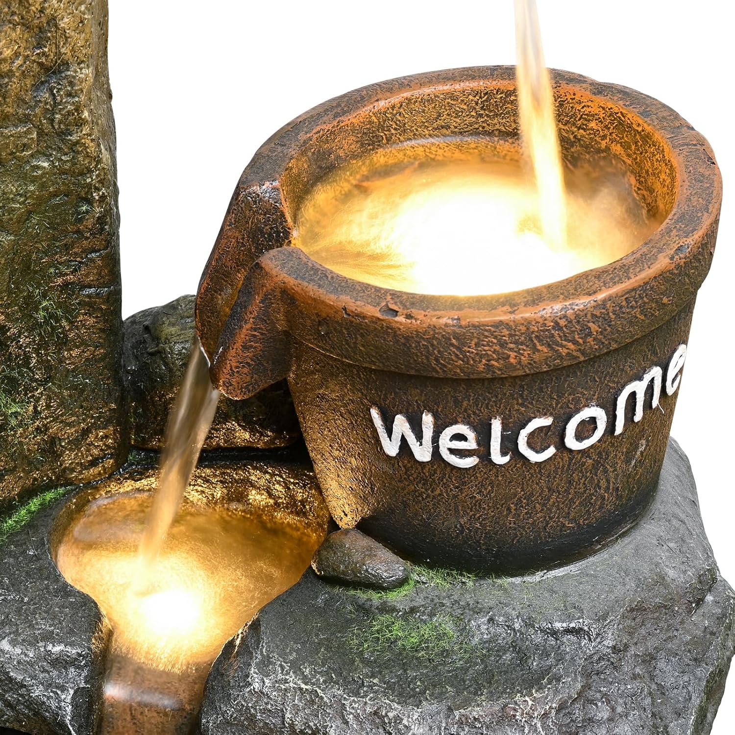 - Durable Outdoor Fountain: Made of durable weather-resistant resin with a natural stone look, which are weatherproof, rust-resistant, and resilient, ensuring your outdoor water features remain rich in artistic touch. Suitable for both outdoor and indoor use.