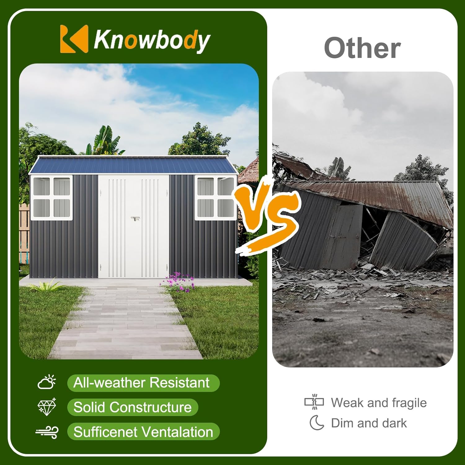 - ⭐Upgraded Full-Frame Structure: Built with sturdy galvanized steel and reinforced panels, the garden sheds provides great resistance to corrosion, water, and wind for lasting durability.After 1000+ tests makes it more eaiser for installation, more stable, and more durable for outdoor use