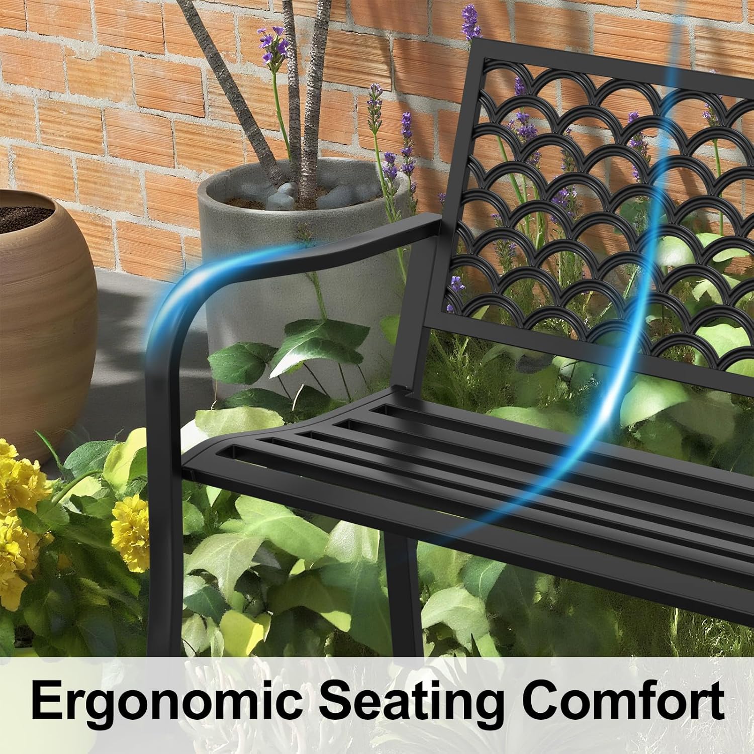 - ăErgonomic Seating ComfortăWith curved armrests, a contoured seat, and angled backrest, the outdoor bench offers exceptional comfort. Perfect as a small garden bench, bench for outdoor furniture, or outside bench for reading, coffee, or conversation, it turns any patio benches or porch benches outdoor area into a cozy retreat.