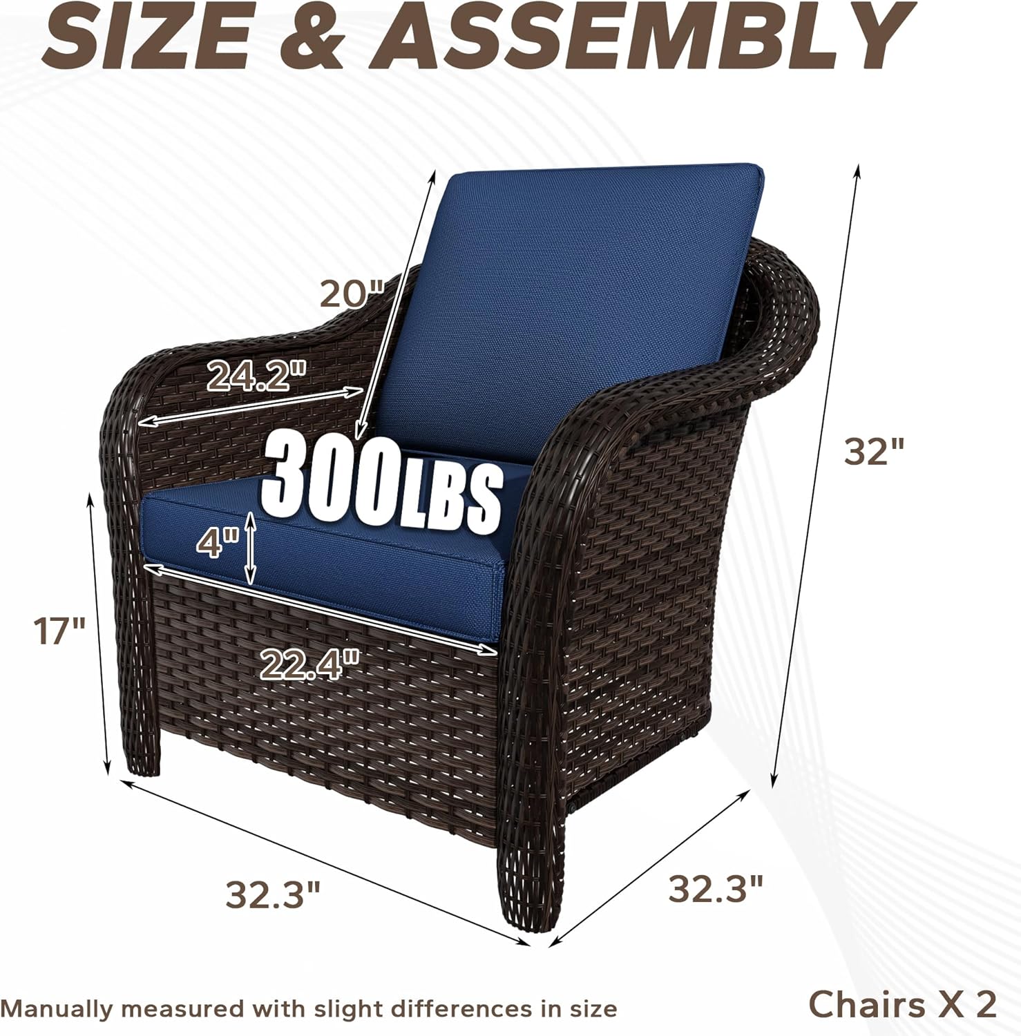 - Size : 2 PCS Armchairs