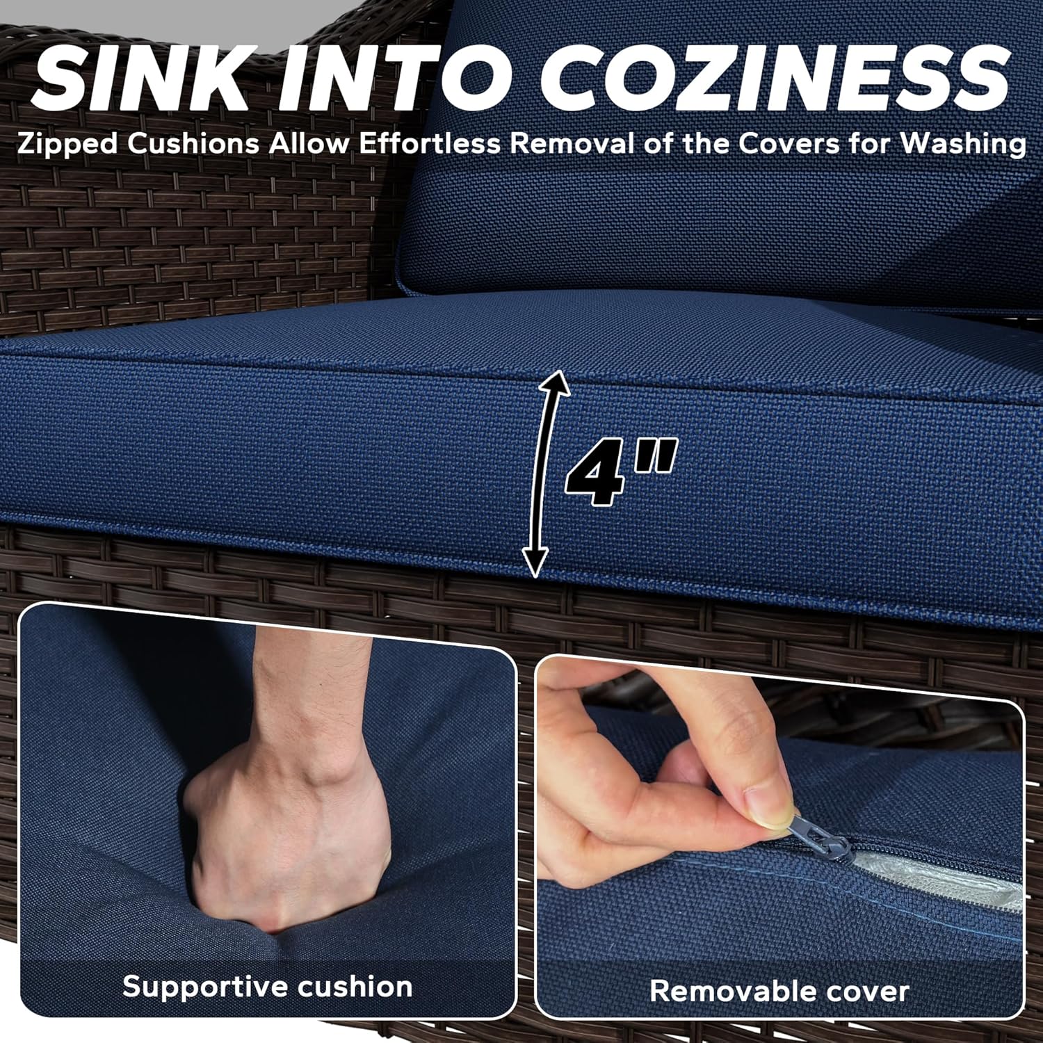 - Sturdy and Durable: The outdoor furniture set is made of steel frame and PE wicker, ensuring that it will be more sturdy. Fade-resistant fabrics of cushions is stain & fade resistance, tear & wear resistance