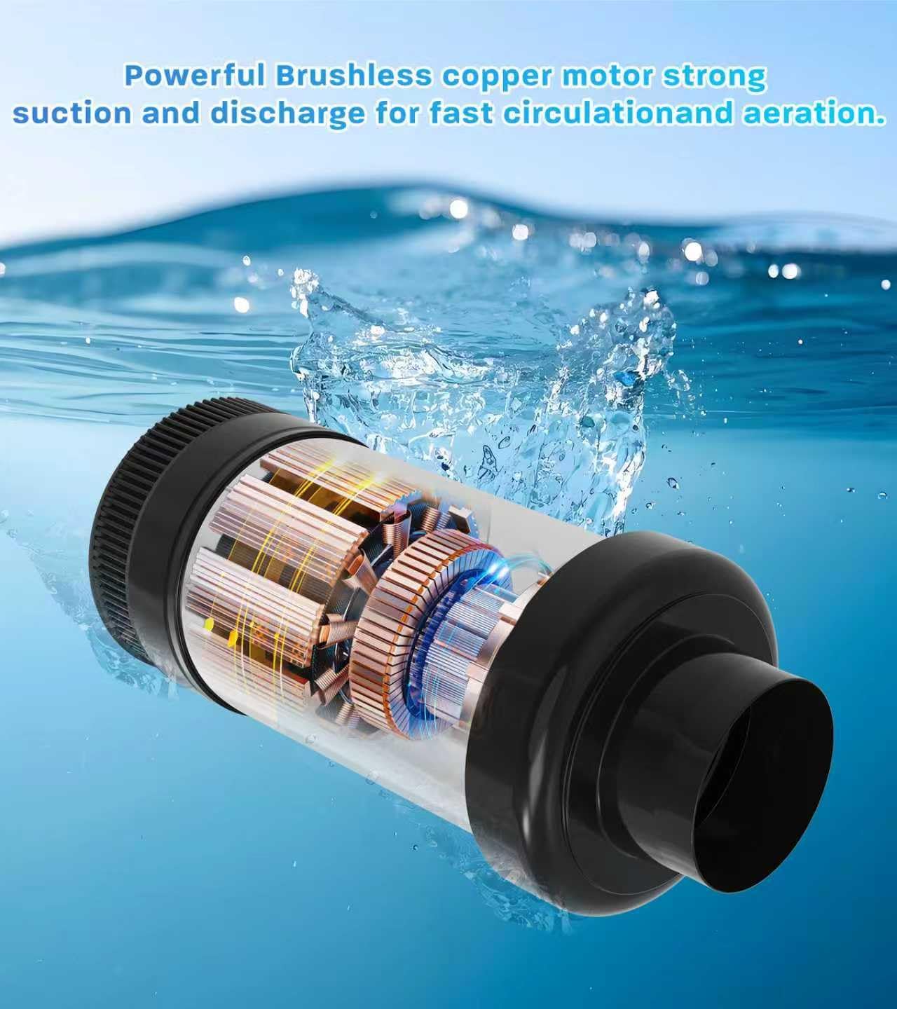 - 【Durable Aerator Design】The floating aerating pump adopts a high-efficiency oil-free motor, an anti-clogging inlet filter screen, and a large stabilizing float, which can ensure long-term stable operation, allowing it to easily handle various weather conditions and water environments.