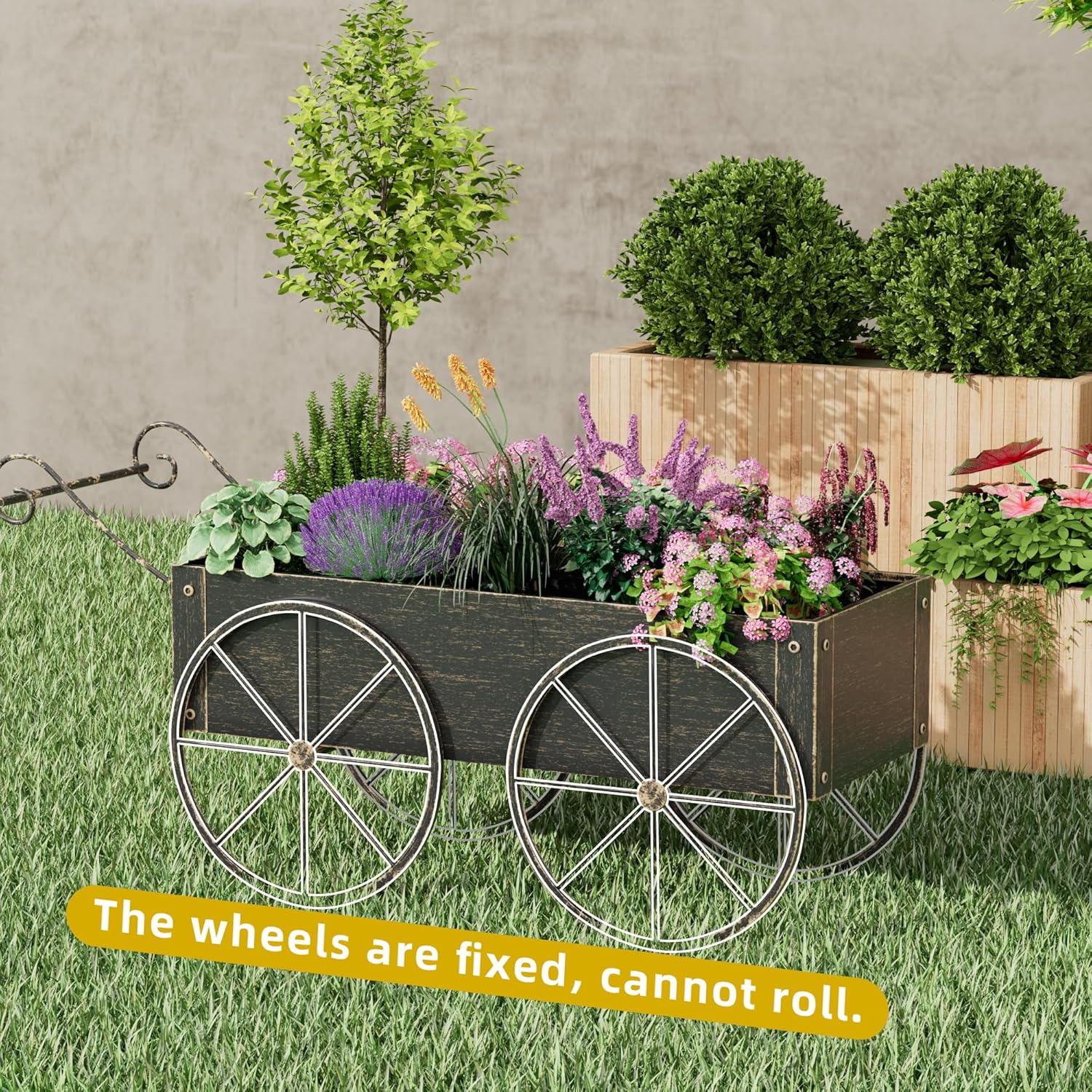 - 【Decorative Wagon Charm】This garden planter is defined by unique and vintage horse drawn carriage design (Fixed Wagon Wheels), greatly improving visual aesthetic while adding a quaint charm and an artistic touch to environment